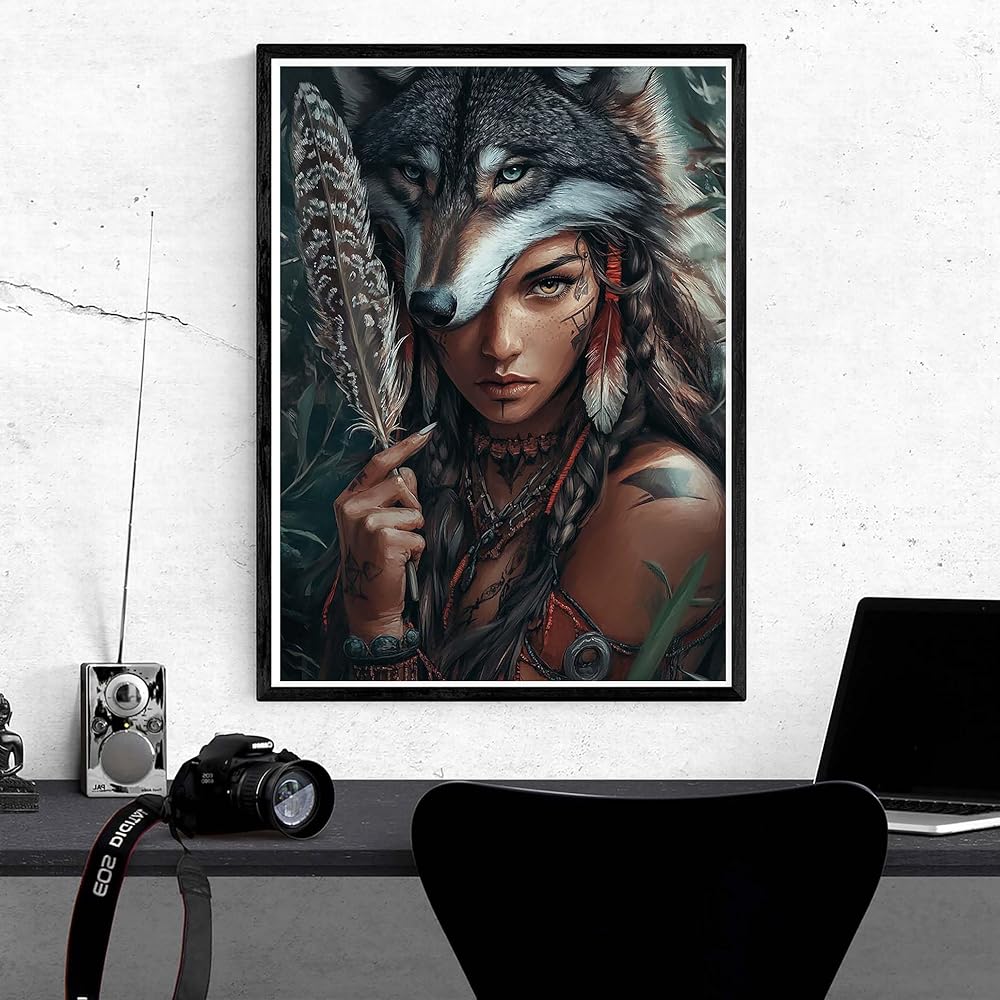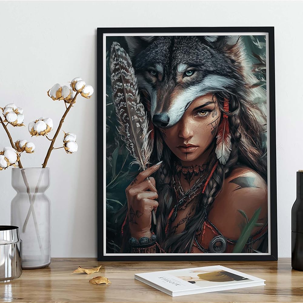 Kaliosy 5D Diamond Art Kits for Adults Beautiful Wolf by Number Kits, Diamond Painting Art Woman Animal DIY Full Drill Crystal Craft Cross Stitch Embroidery Decoration (12x16 inch) 30x40 cm