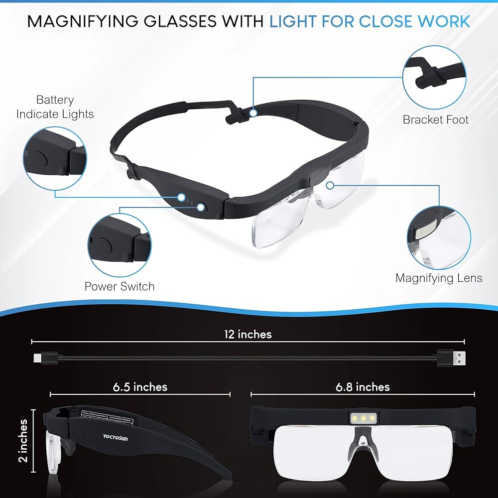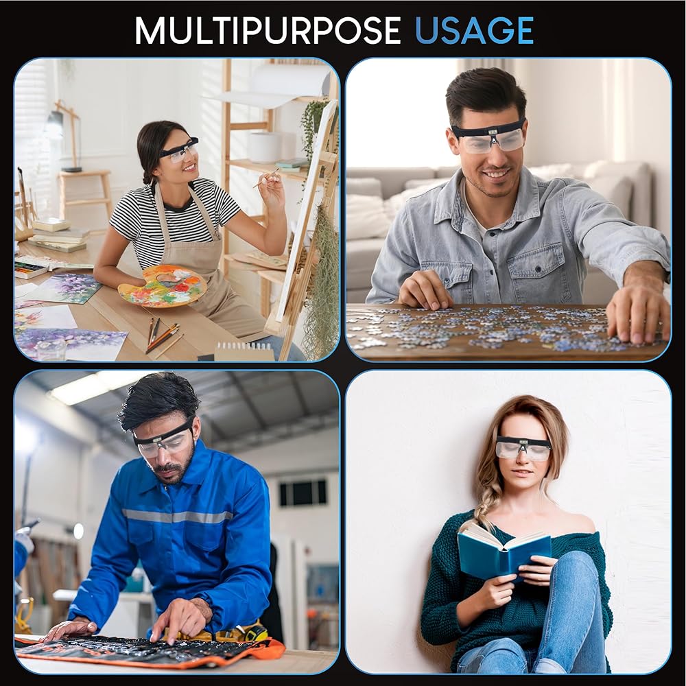 Multifunctional Magnifying Glasses: Perfect Magnifying Glasses for close work, reading, painting, watch repair, arts and crafts. It is also a big help for seniors. If you have any questions about our product, please feel free to contact us, we're around to help you.