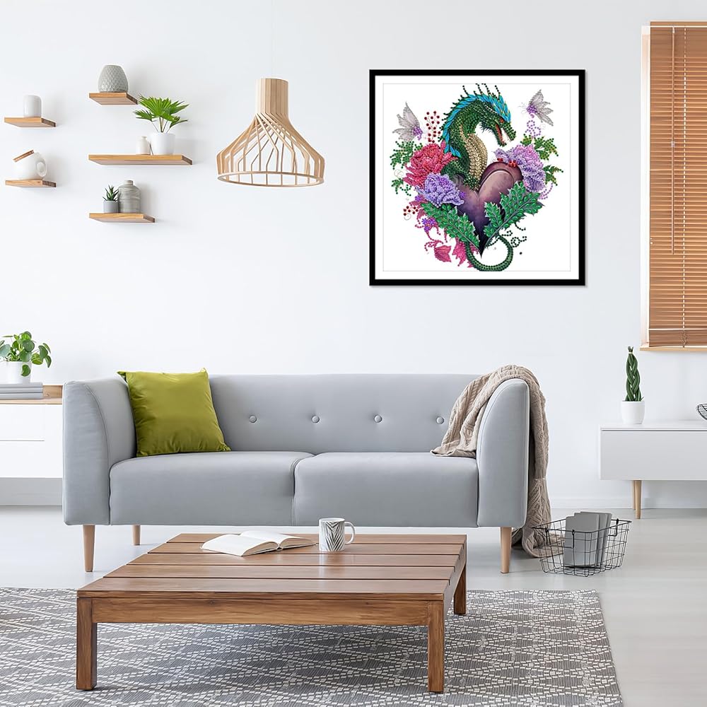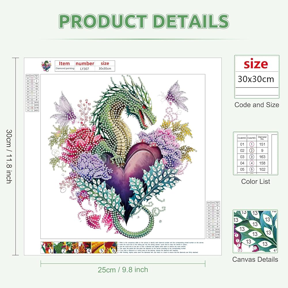 EOBROMD Dragon Diamond Art Kits for Adults, Flower DIY Diamond Painting Kits for Beginners, Crystal Rhinestones Diamond Painting for Home Wall Art Decoration