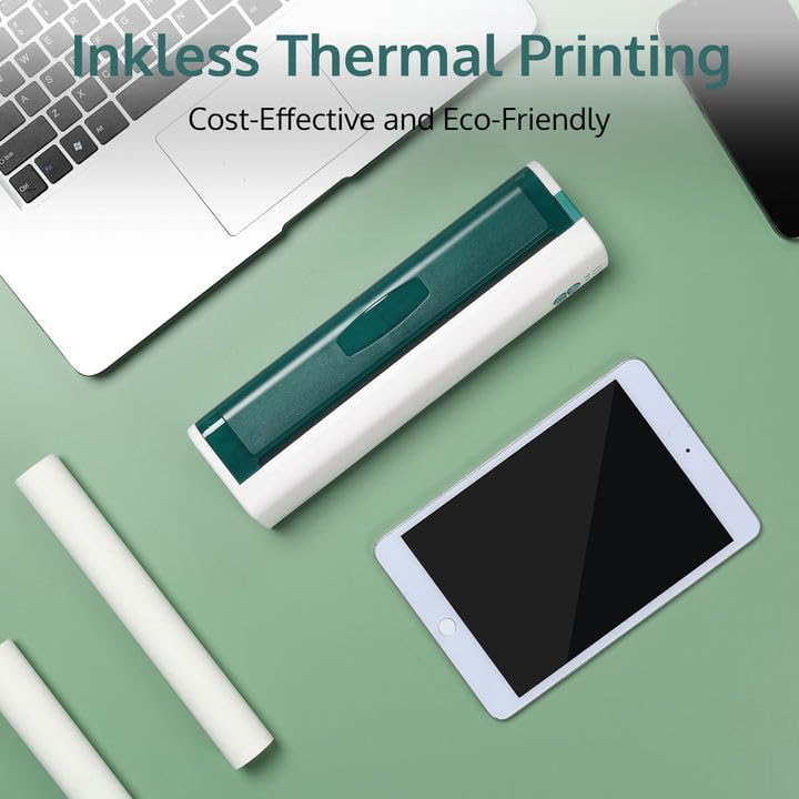 OFFNOVA Portable Printer Wireless for Travel, Thermal Inkless Printer, Support US Letter & A4 Size, Compatible with iOS, Android, Laptop with 1 Roll 8.5" x 11" Thermal Paper, for Mobile Office, Green