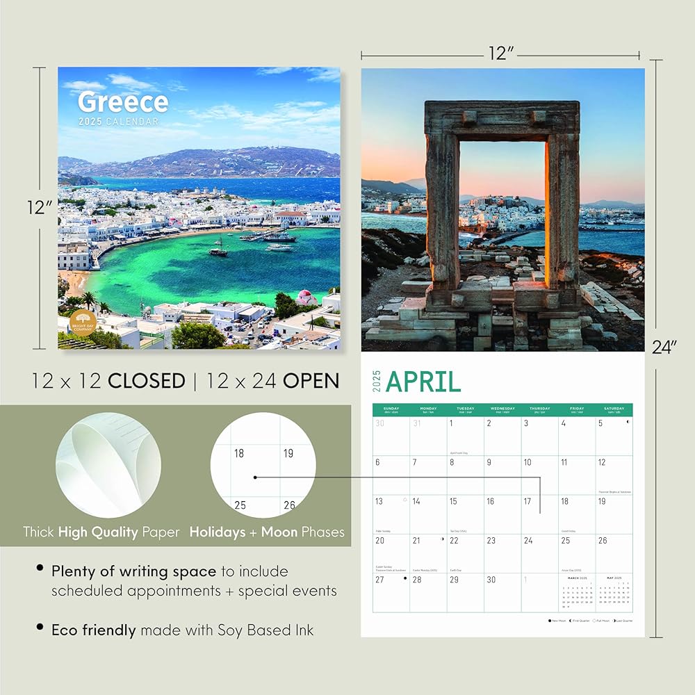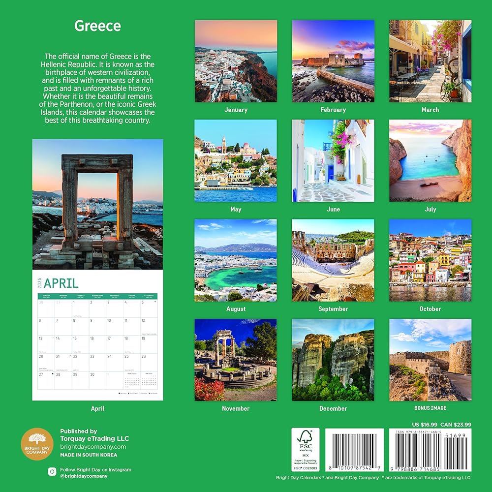 2025 12 Month Calendar - The official name of Greece is the Hellenic Republic. It is known as the birthplace of western civilization, and is filled with remnants of a rich past and an unforgettable history. Whether it is the beautiful remains of the Parthenon, or the iconic Greek Islands, this calendar showcases the best of this breathtaking country.