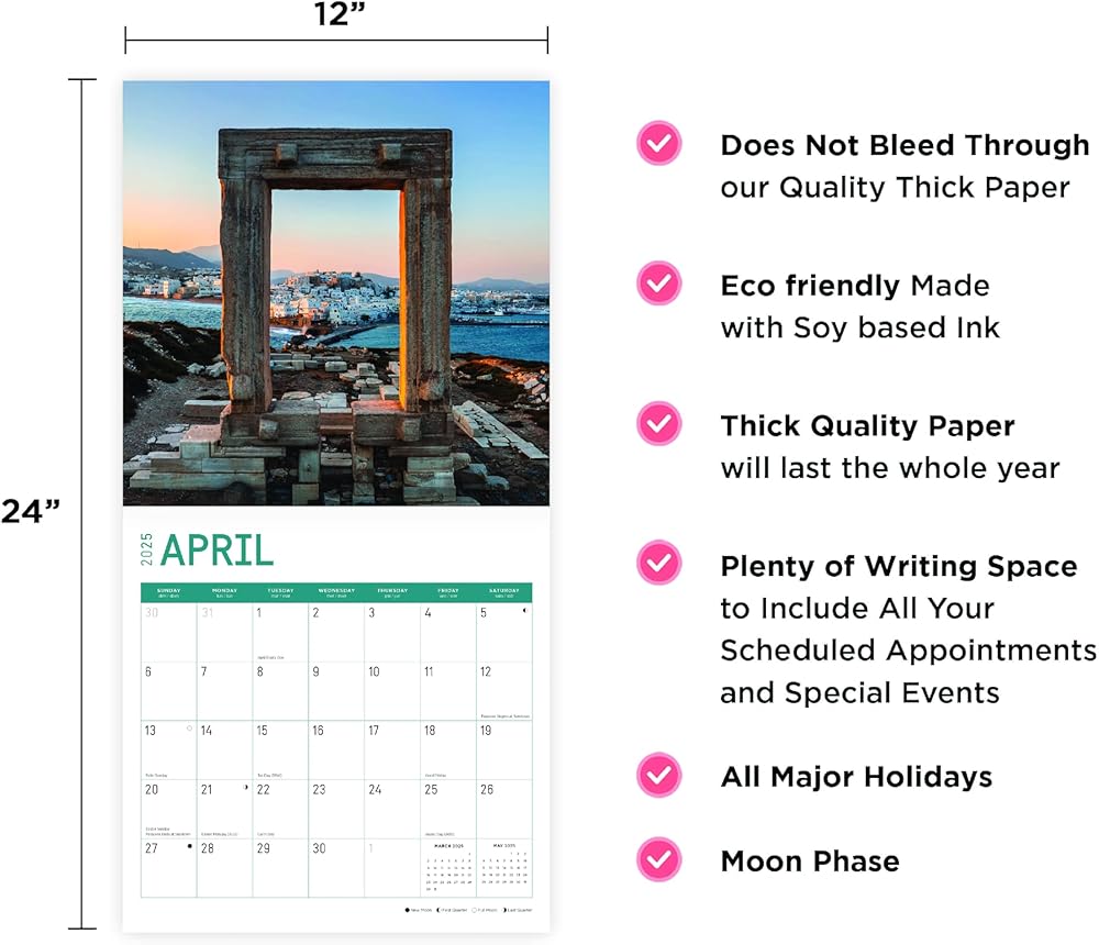 High Quality : Wall Calendar Size Closed: 12 x 12 Inch. Opened: 12 x 24 Inch. Does not bleed through! 13 Full Color Images in our 2025 12 x 12 Wall Calendar. No compromises are made on image quality or content.