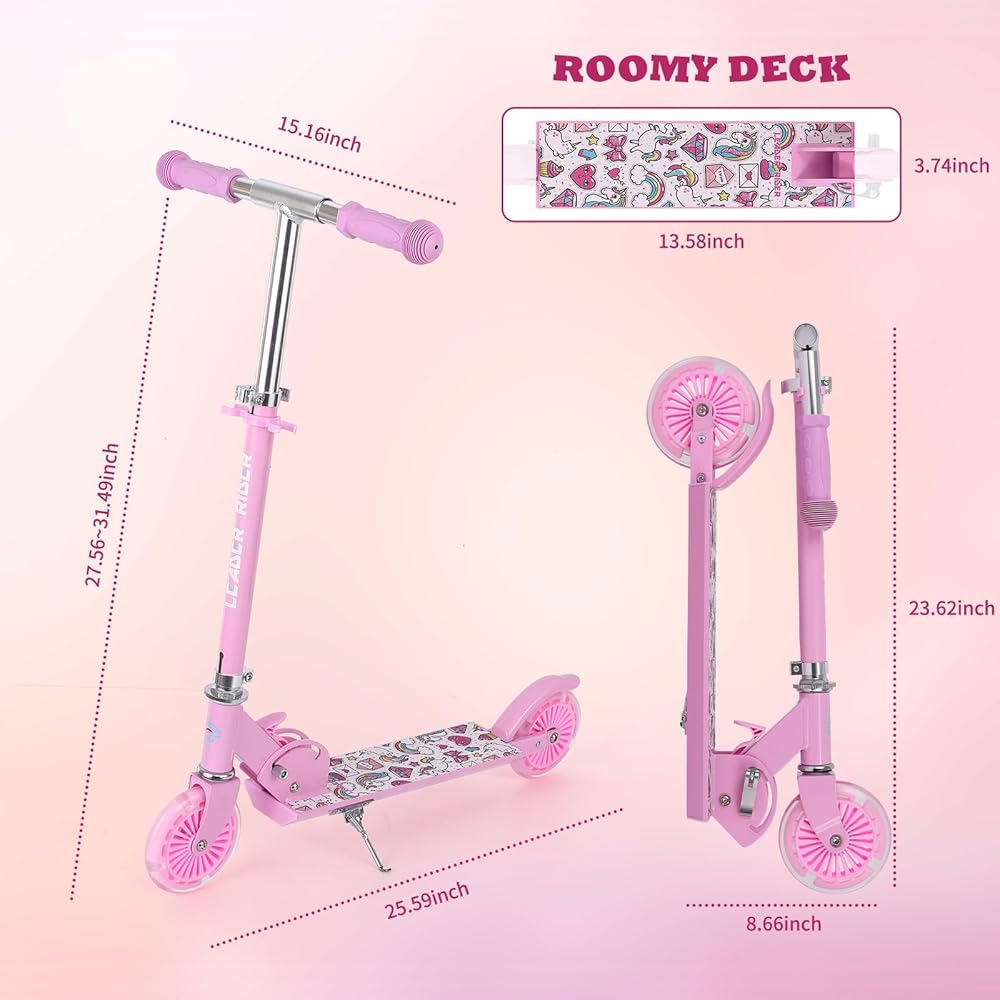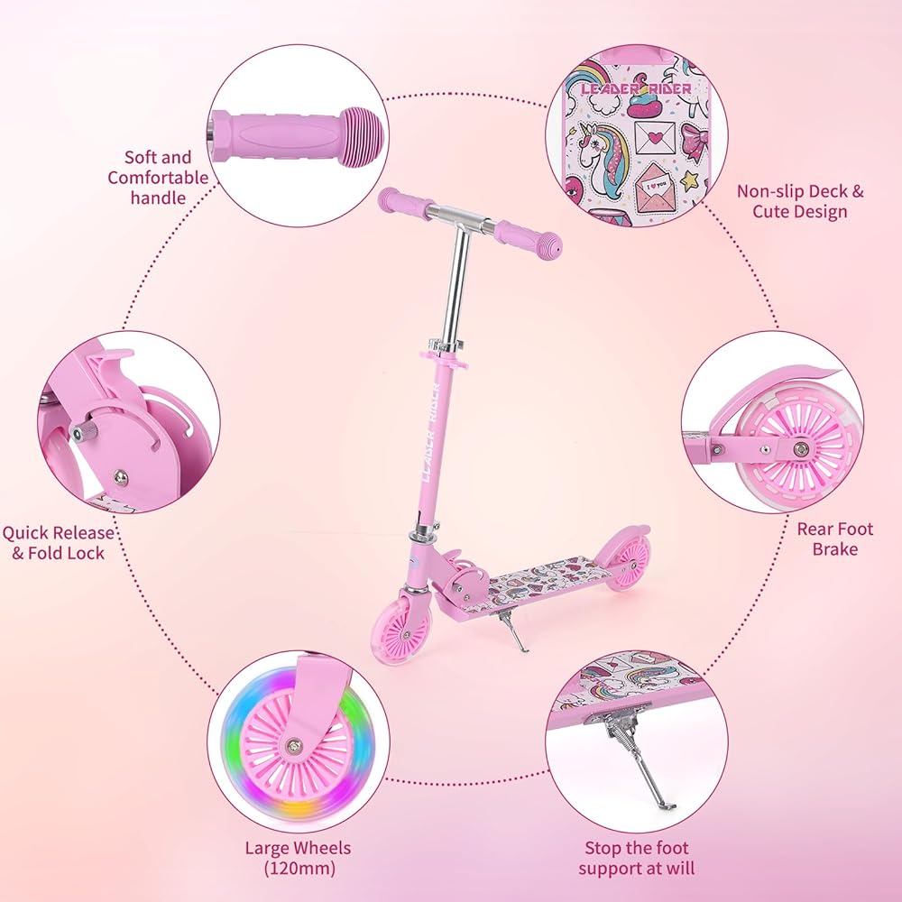 【Durable and Reliable】: The LEADER RIDER Kick Scooter is built to withstand regular use and provide long-lasting durability. Its sturdy aluminum frame and robust construction can handle the demands of everyday riding. This scooter is known for its reliability, making it a trusted choice for both kids and adults alike.