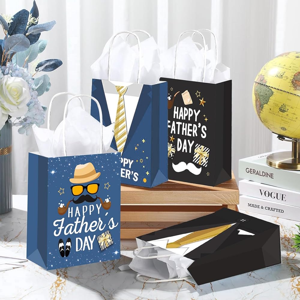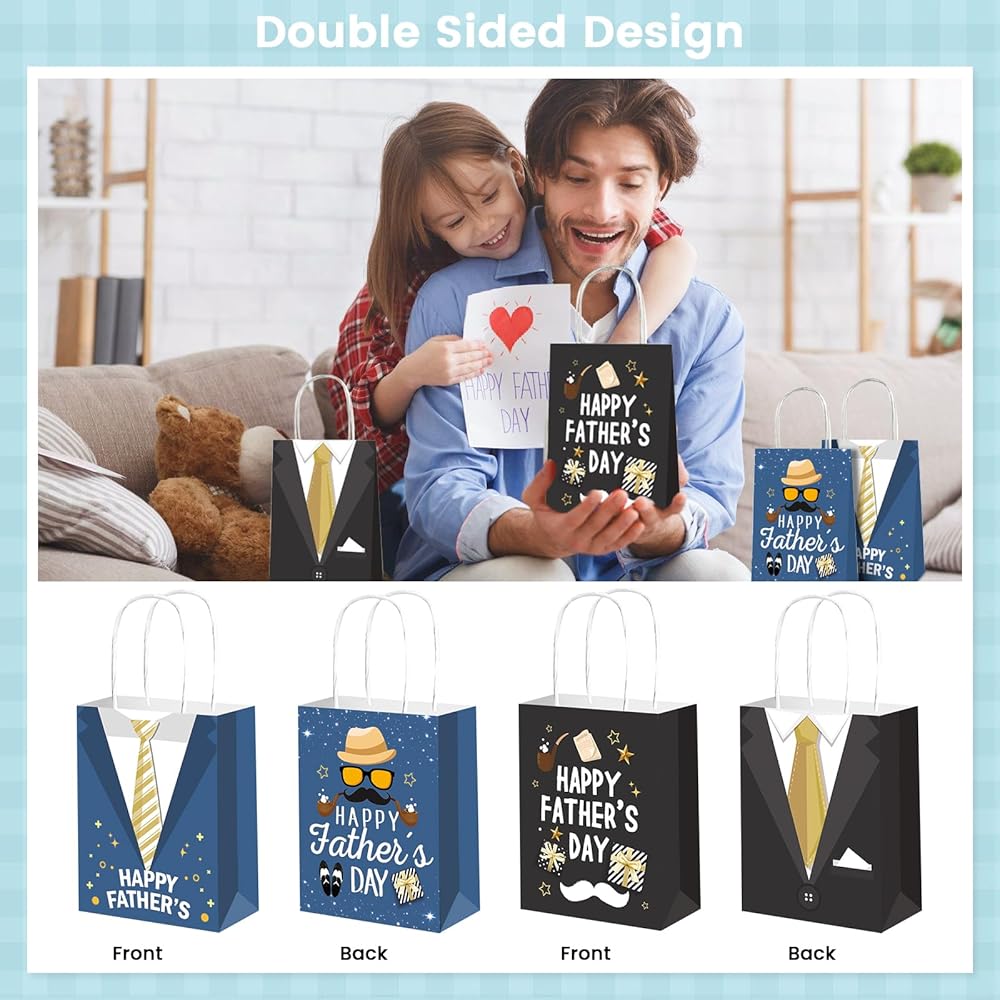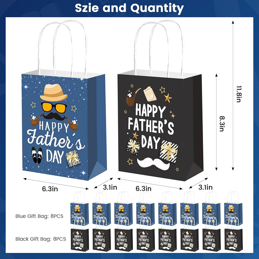【Quantity】 : A total of 16 pieces happy father's day gift bag in 2 styles (Blue style*8pcs, Black style*8pcs).