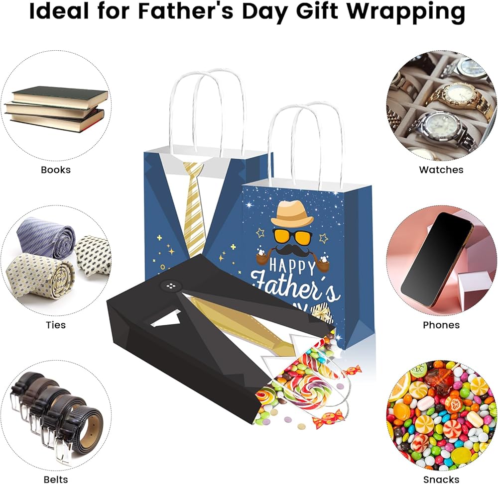 【Size】: Father Day Gift Bag measures about 6.3" wide by 8.3" high(11.8"high with handle) by 3.15" deep.
