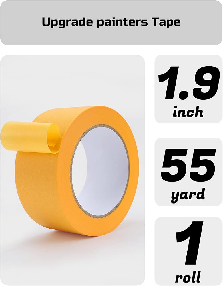 Bulk Pack Value: Comes with 1 roll of yellow painter's tape, each measuring 55 yards, totaling 55 yards; Perfect for various indoor and outdoor painting projects, ensuring you have ample tape to complete your tasks without running out
