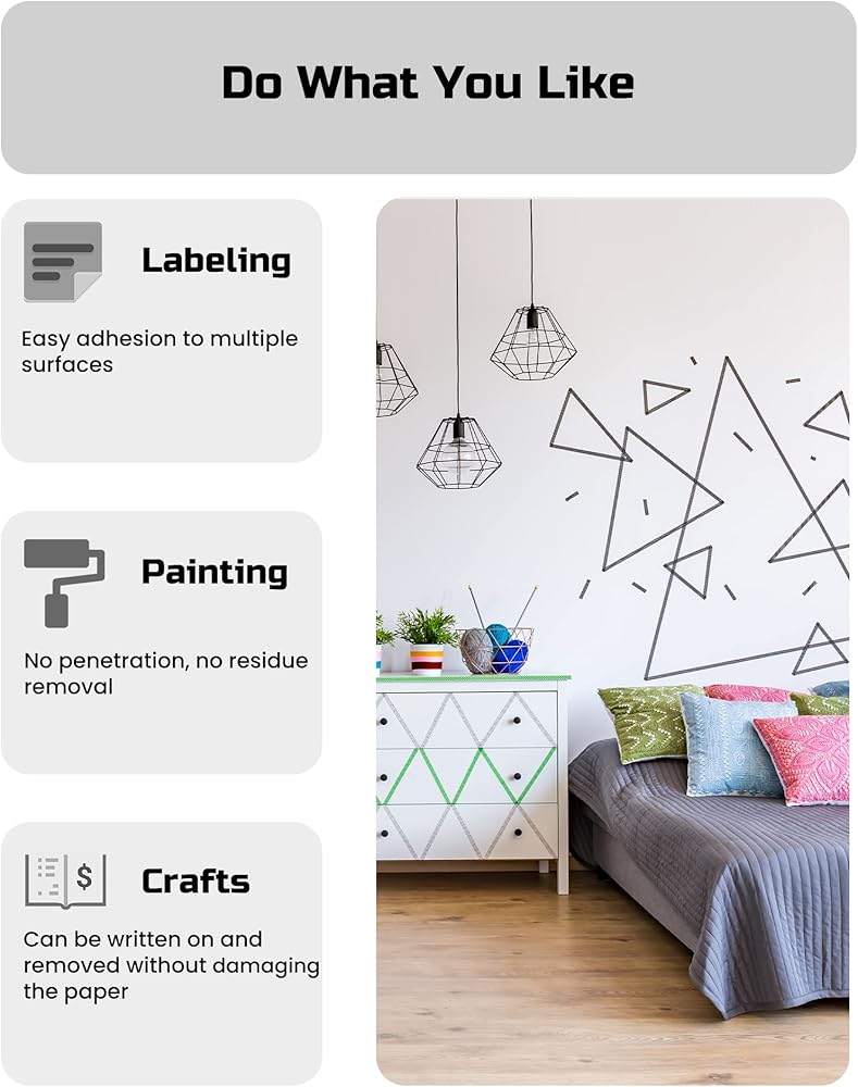 User Friendly Design: The yellow painter's tape is easy to tear and remove, offering good holding power to resist lifting or curling; The special backside treatment allows for controlled unwind, making it convenient to use