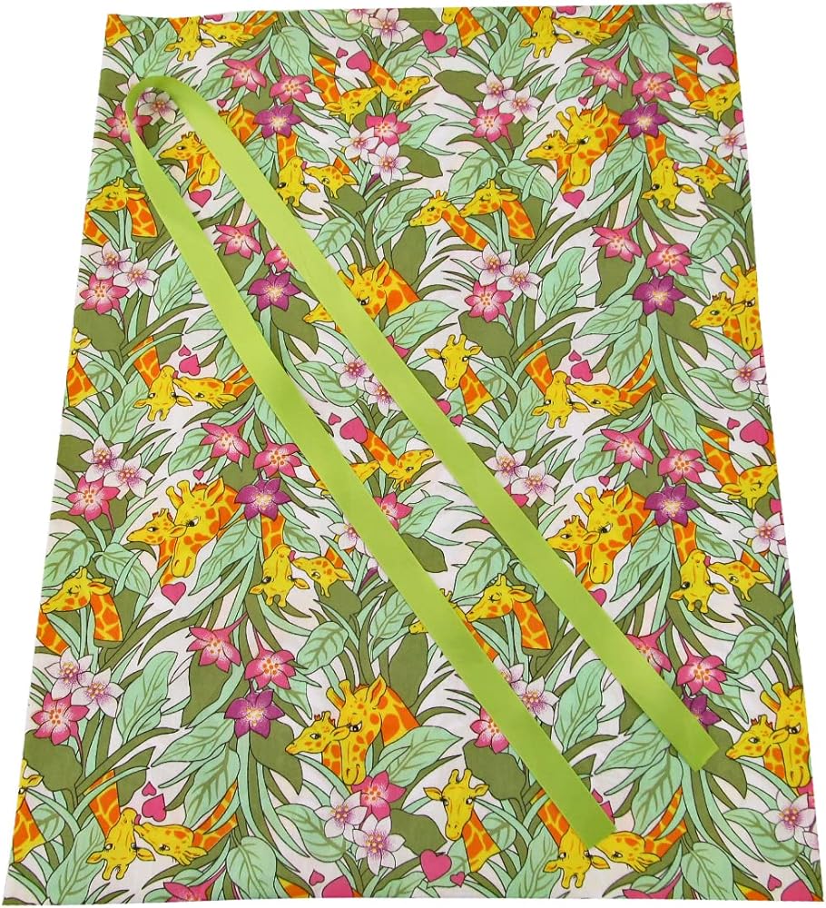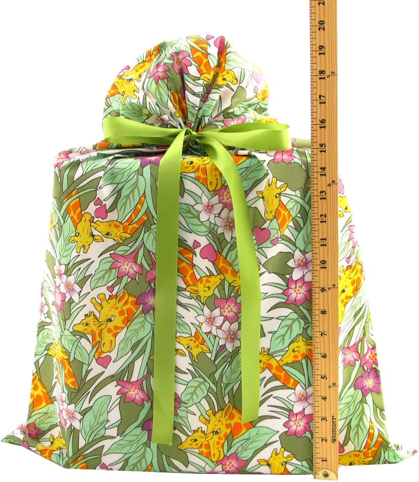 Mama and baby giraffes snuggle in the jungle on this poly/cotton fabric gift bag