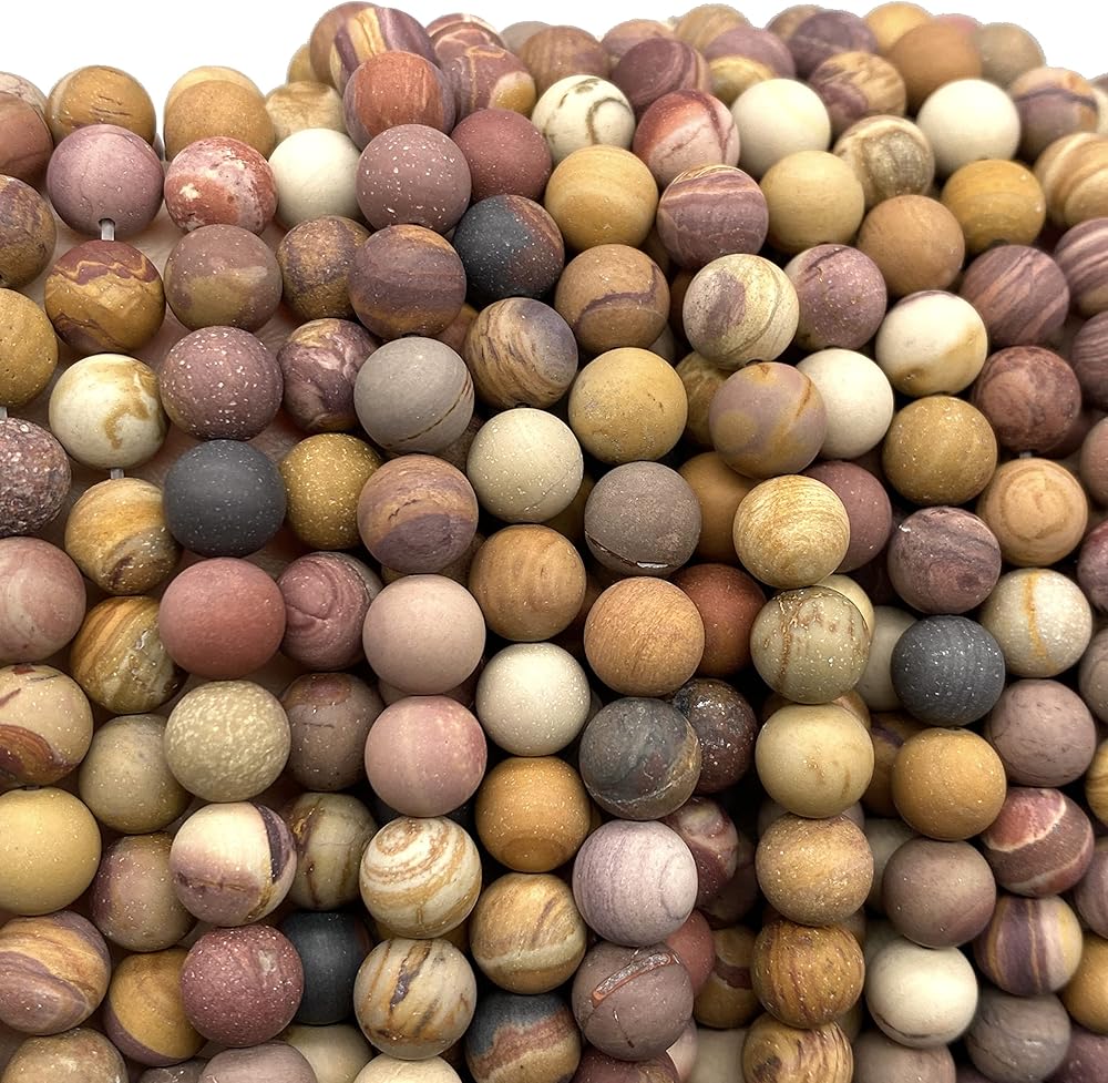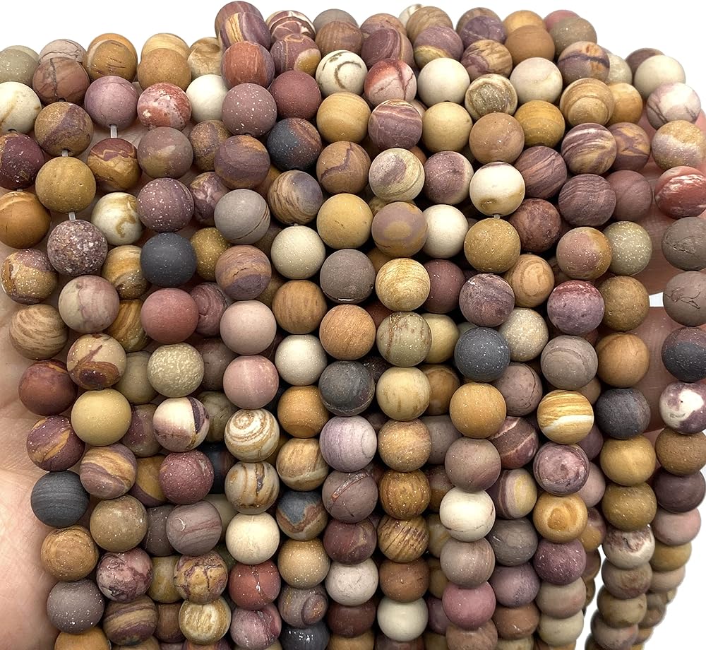 ABCGEMS Velvet-Matte-Finished American Sunset Mookaite Beads (Enhance The Stone's Inherent Texture and Nature Hues with a Non-Glare Aesthetic) Smooth Round 8mm (Non-Shiny)