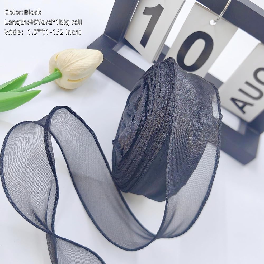 【Size and Color】: You will get 1.5 inch wide and 40 yards wired organza sheer ribbon. The length is sufficient to meet your needs, and the ribbons can be cut to the desired length.Unique color and style. featuring 9 stunning colors:Sage Green/Ivory/Light purple/Black/Pink/Light gray/Red/White/ Sky blue。