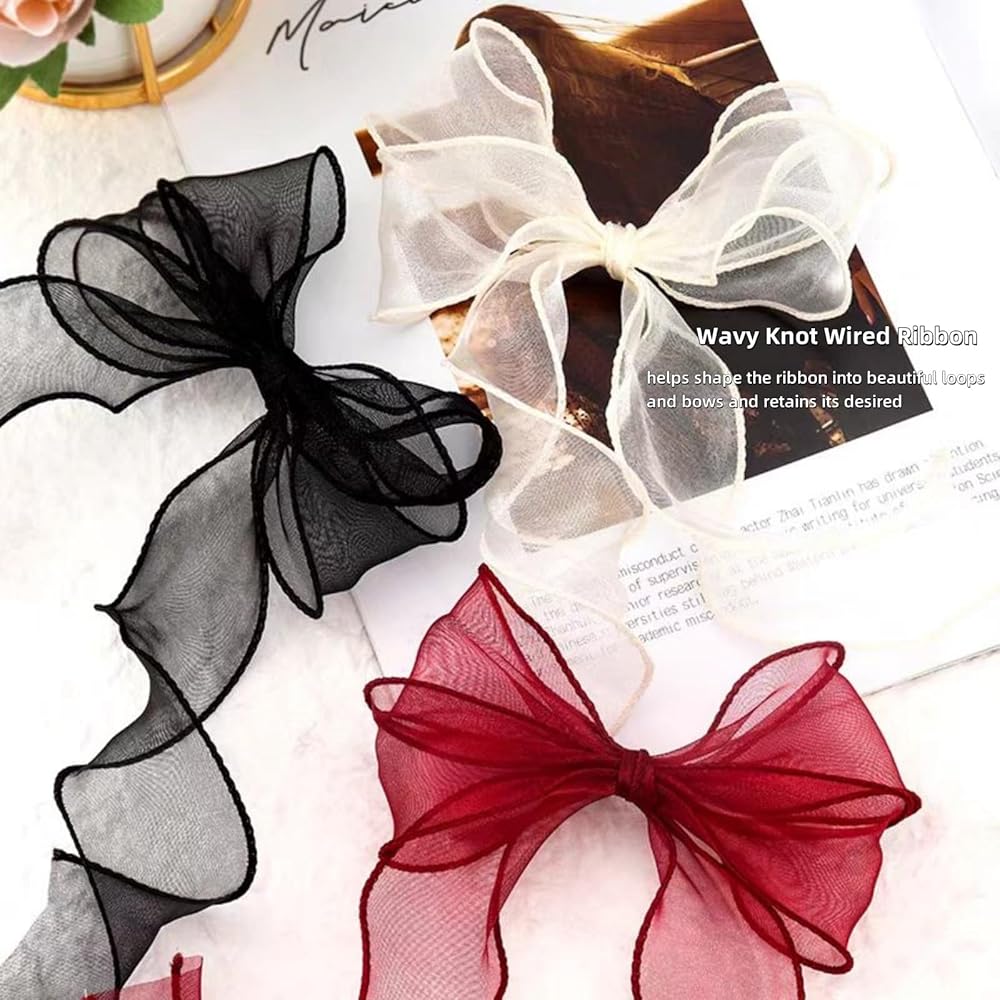 【Wired Organza Design】: These organza ribbons are light and transparent,Featuring a wave like three-dimensional effect,soft to the touch, stretchy and breathable. Organza Ribbons have a thin monofilament thread on each edge that helps shape the ribbon into beautiful loops and bows and retains its desired shape.