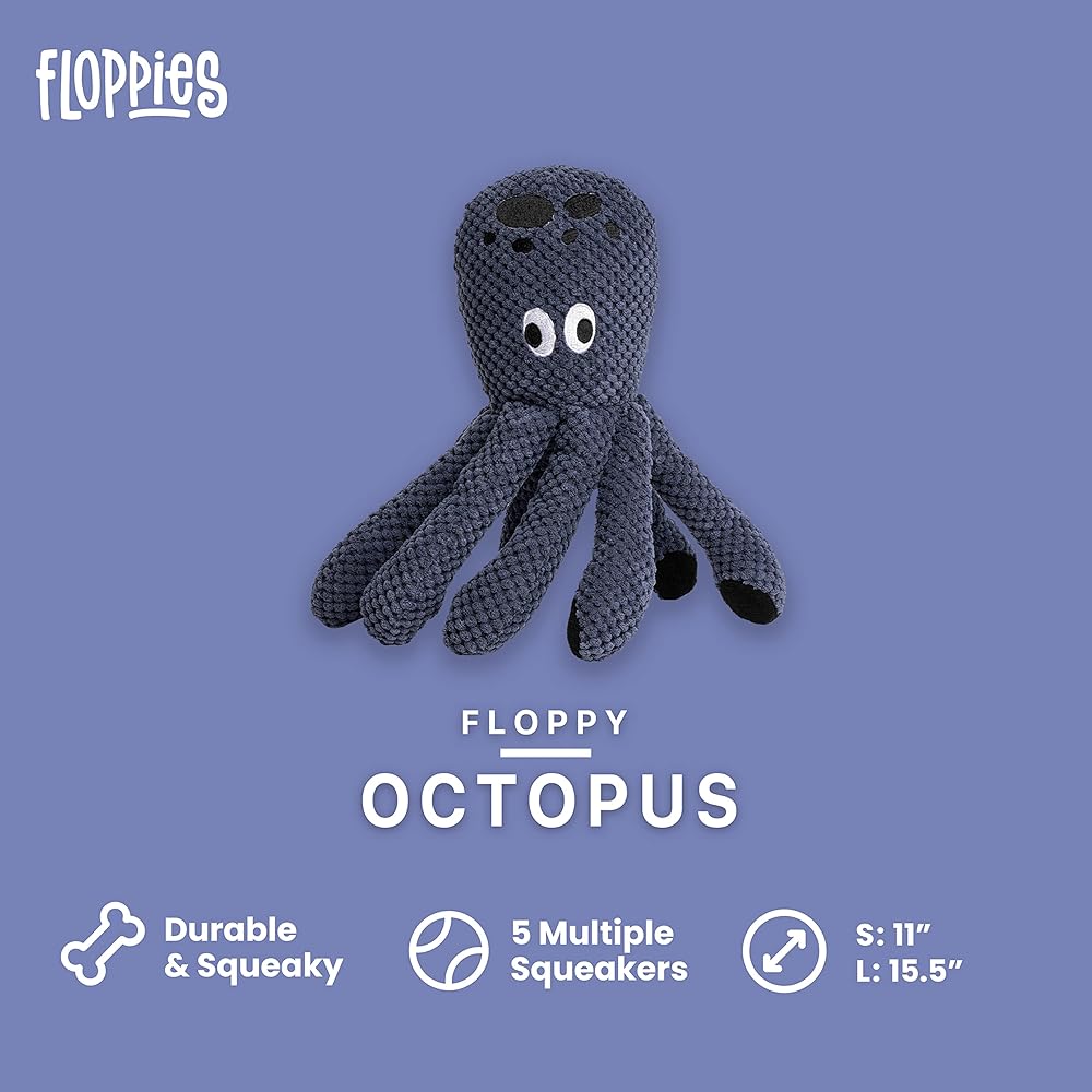 LIGHTWEIGHT PET FLOPPIES: Your dog deserves a best friend. In addition to his owner, give him plush fabric pet floppies from Fabdog that feature dog squeaky capabilities and novelty designs.