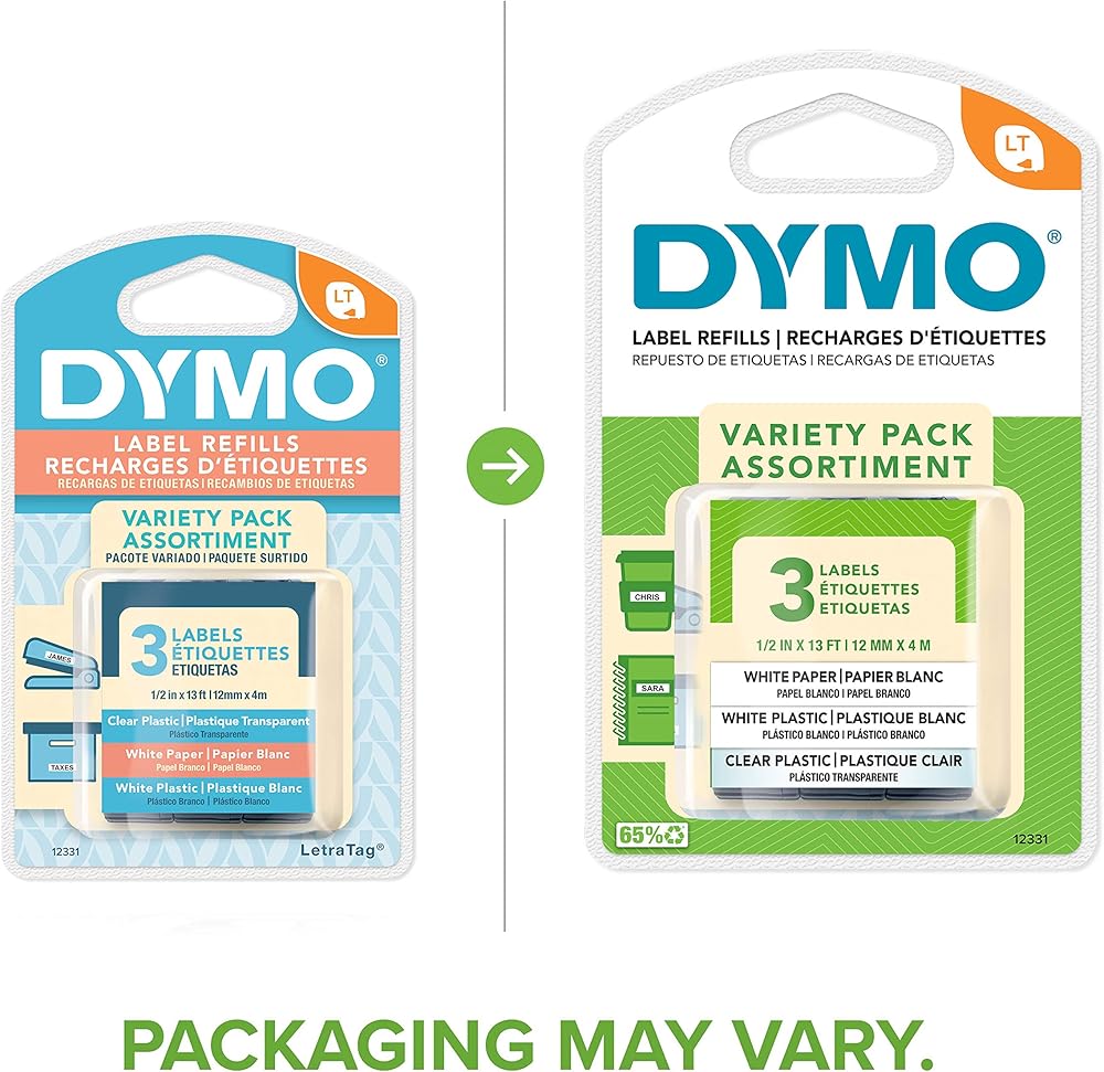 This three pack of DYMO LetraTag labels comes complete with matte white paper labels, glossy white plastic labels and clear plastic labels. Created specifically for your LetraTag label maker, they provide an economical solution for labeling almost anything and anywhere in your home.