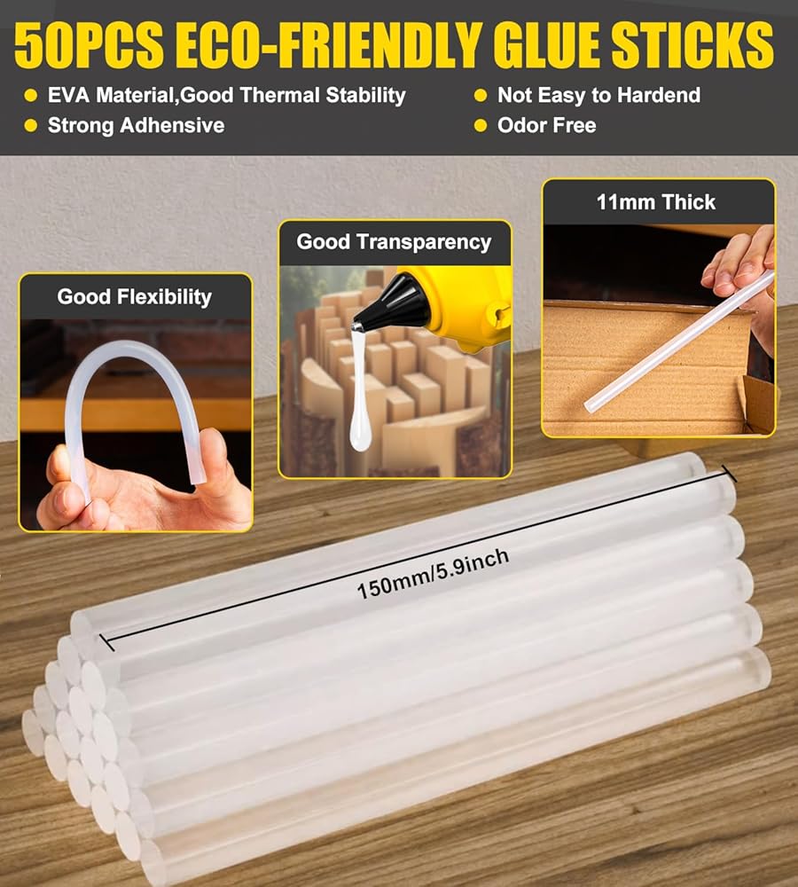 Crystal Clear Full Size Hot Glue Gun Sticks, 50 Pack, 0.43x6 Inches, Compatible with Most Glue Guns, Multipurpose for DIY Art Craft General Repairs, Home Decorations and Gluing Projects…