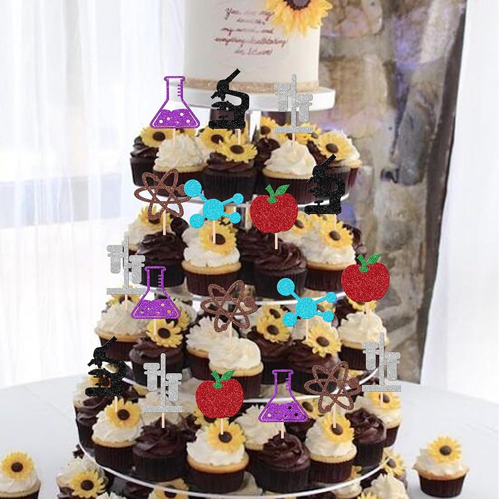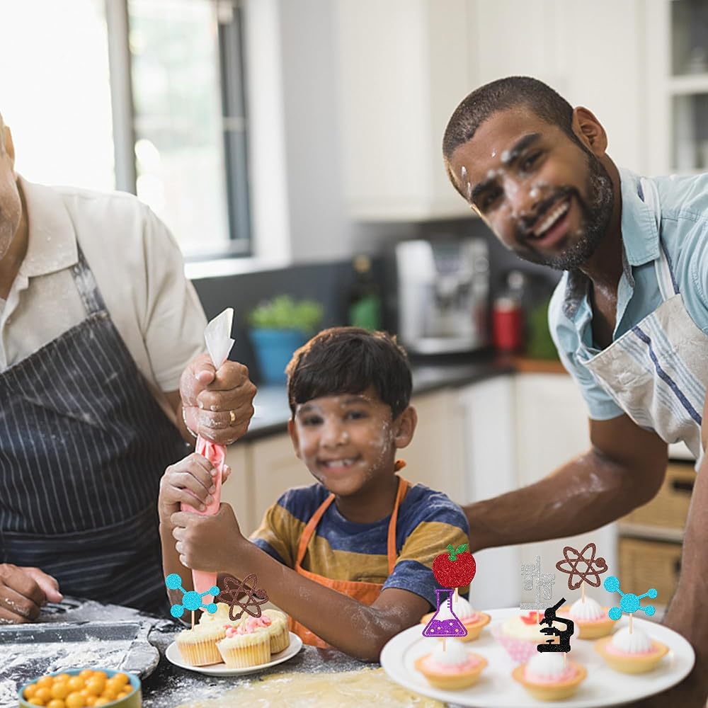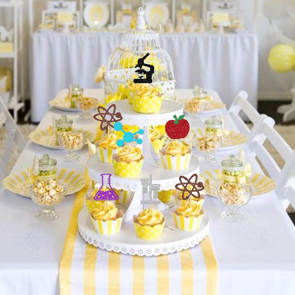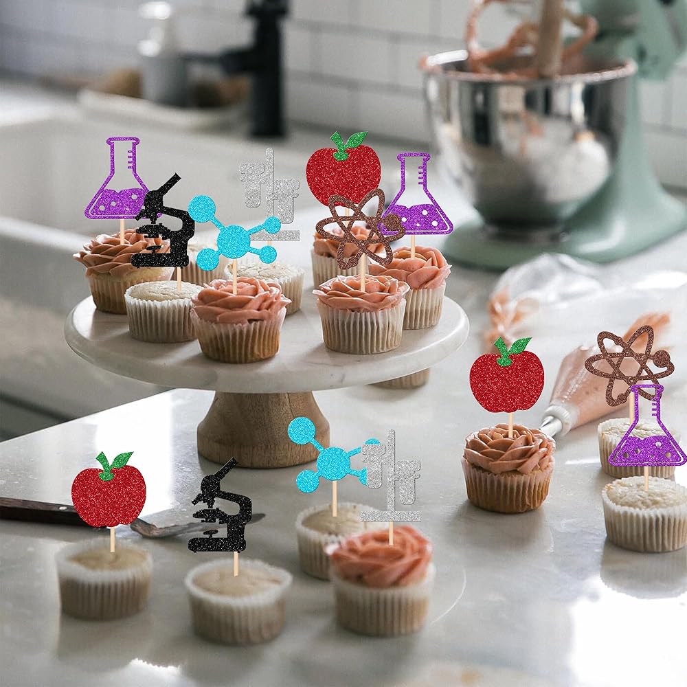 Perfect for science theme party, biology physics chemistry theme party, baby shower theme party, kids boys girls birthday theme party cupcake decorations supplies.