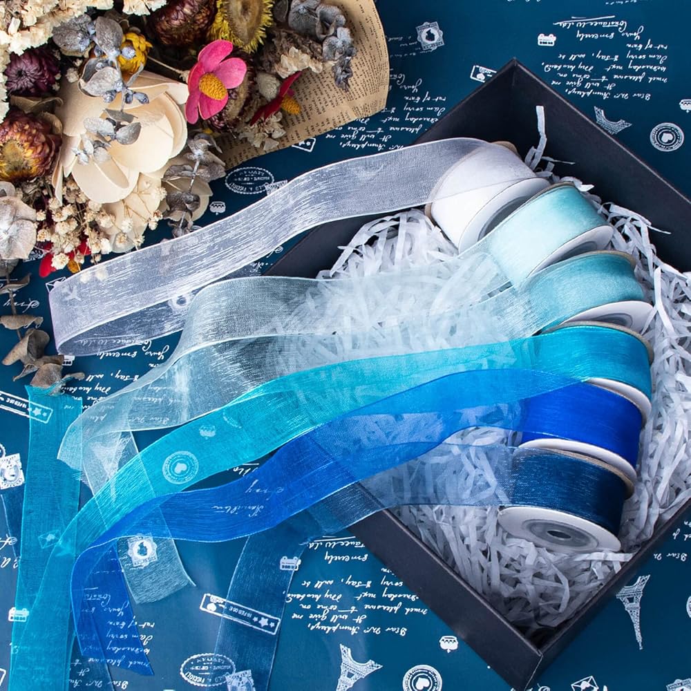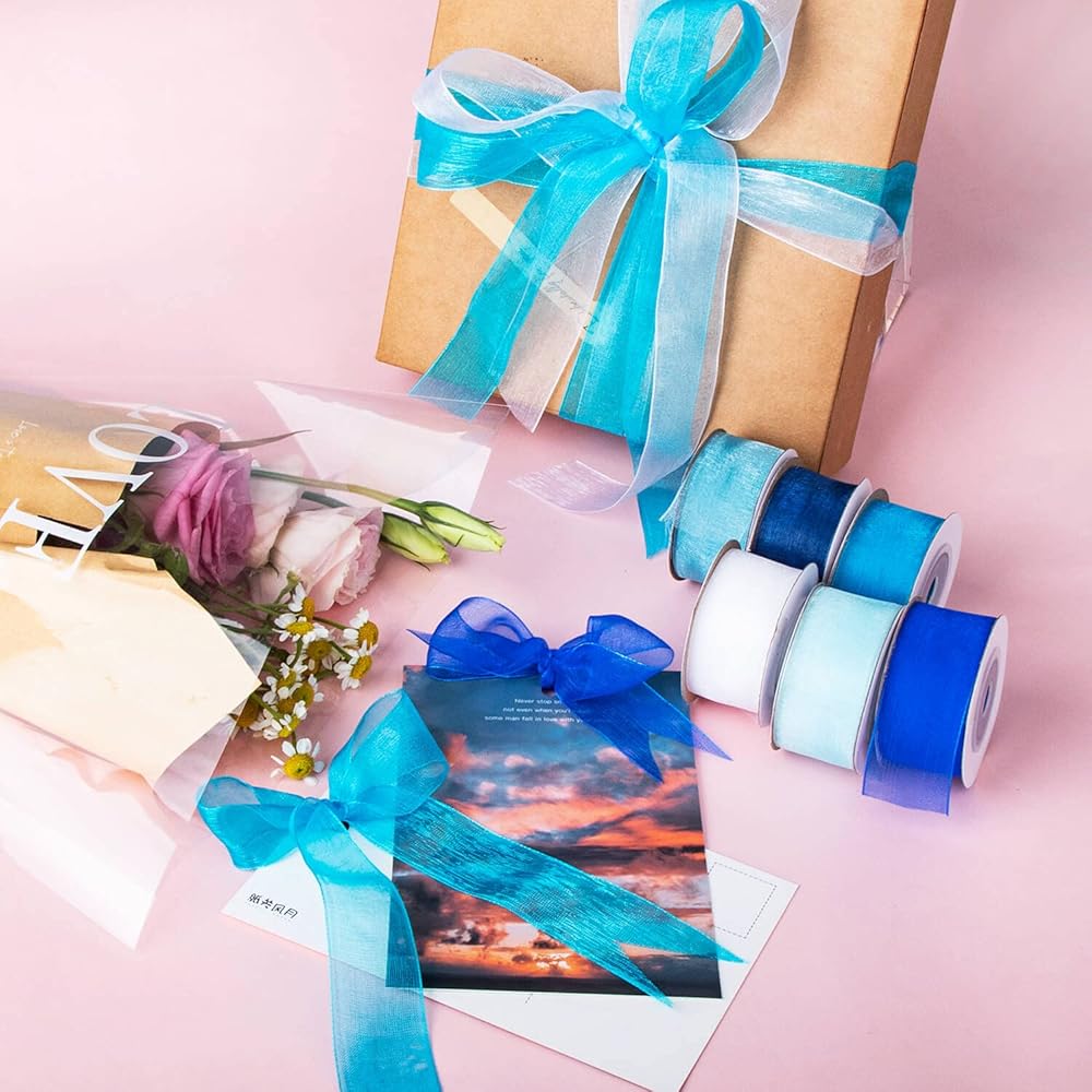 Valuable organza kit contains: 6 rolls 1 inch wide blue series organza ribbon sheer chiffon ribbon for gift wrapping