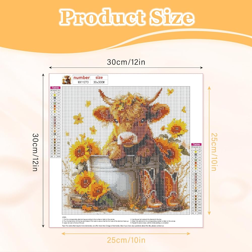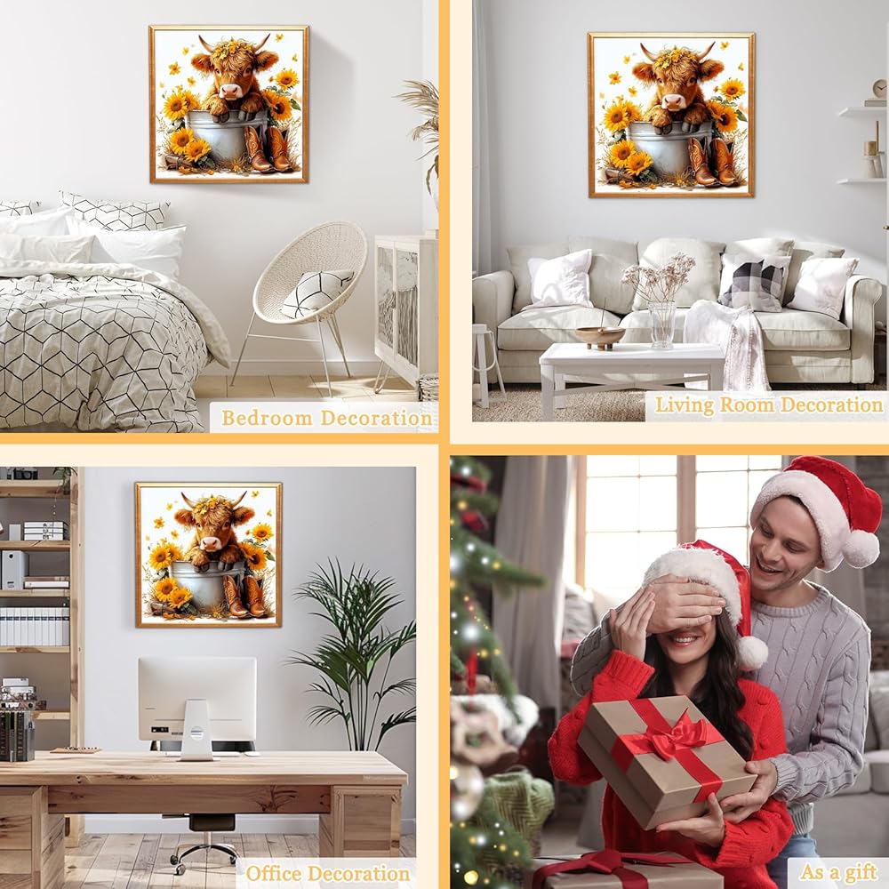 MAXBYE Highland Cow Diamond Paintings Kits for Adults, 5D Cow and Flower Diamond Art Kits for Beginners, Full Drill Round Gem Art Diamond Painting for Home Wall Decor Gift, 12x12in