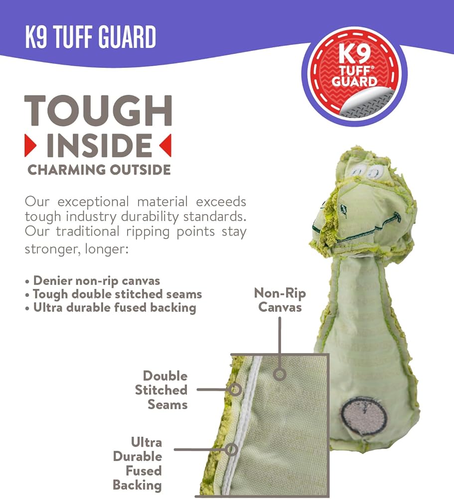 K9 TUFF GUARD TECHNOLOGY: Designed to be loved for a long time by your pup, the Squeakin' Squiggles dog toys are made with K9 Tuff Guard technology featuring denier canvas lining, nylon-fused backing, and double stitched seams for added durability and longevity.