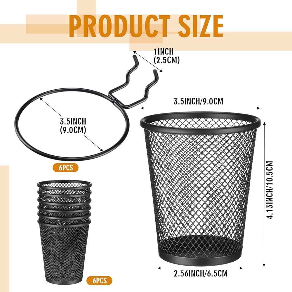 Generous Package: the set comes with 6 pen holders and 6 pegboard hooks, ideal for managing several office supplies effortlessly, meeting your storage needs at once; About 2.95 x 2.95 x 3.74 inches, you can place your office supplies such as pen, scissors, or makeup brushes