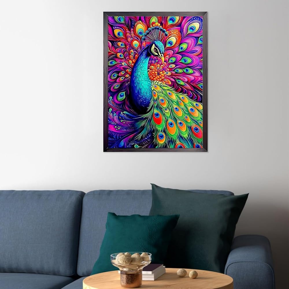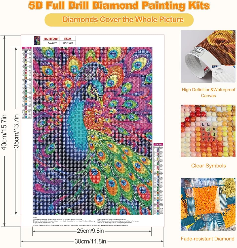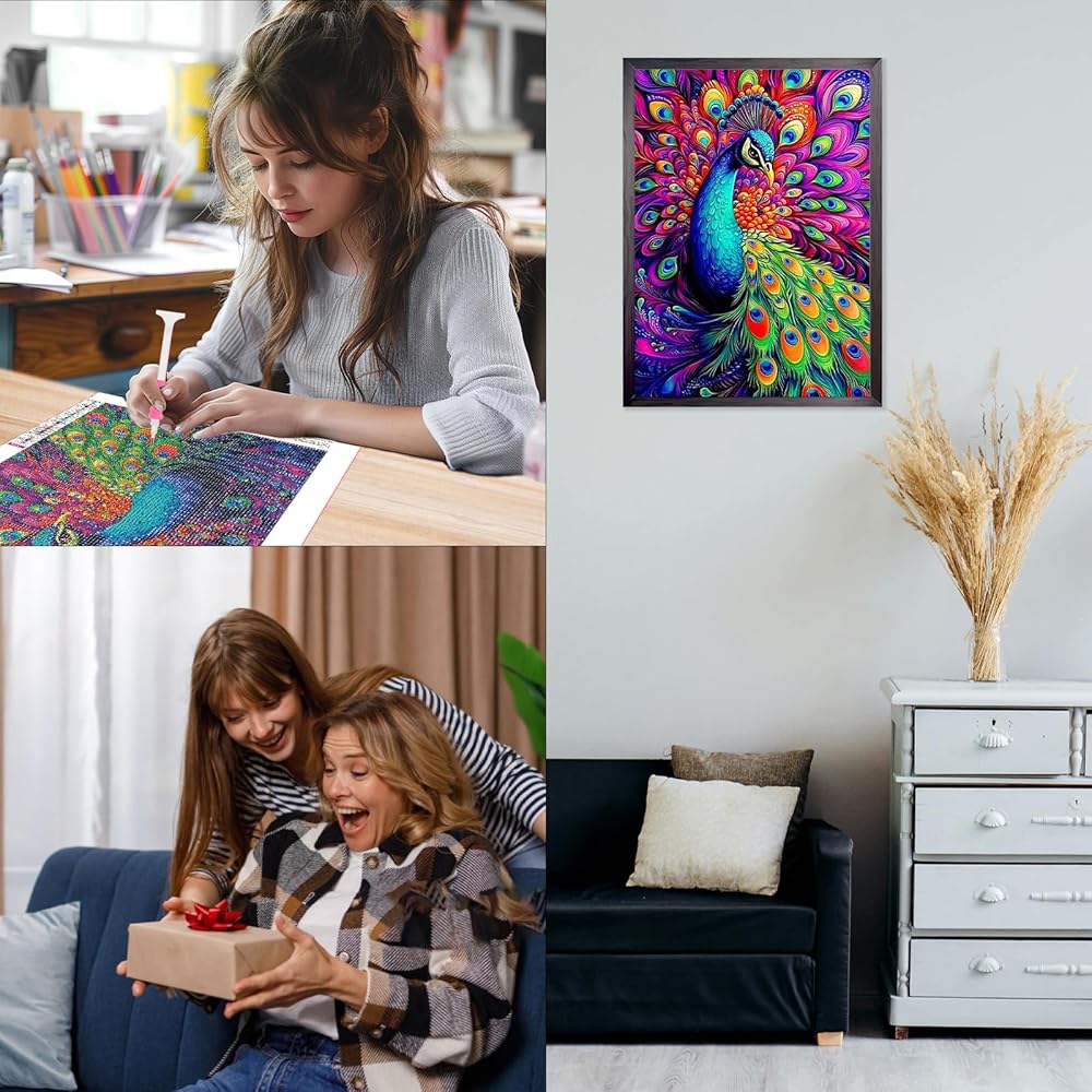 CEOVR Peacock Diamond Art Kits for Adults, 5D DIY Full Drill Diamond Painting Dots Gem Art, Adult Crafts Kits Arts and Crafts, Wall Decor for Home Office 12x16inch