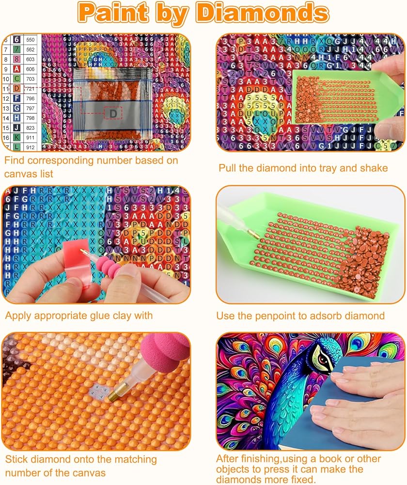 【Easy to Operate】The letter symbols on canvas are clear and easy to read. It's easy for diamonds to stick and maintain pattern, wouldn't fall off. You can easily complete the painting according to the steps. The diamond's color is fade-resistant, ensuring a long-lasting and vibrant finished result.