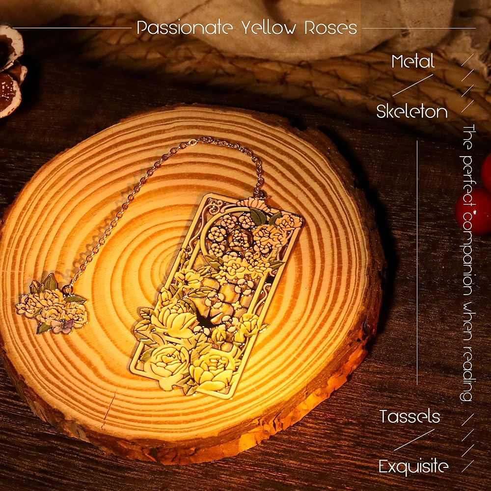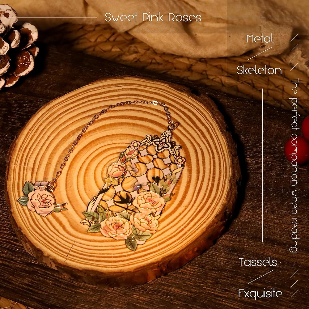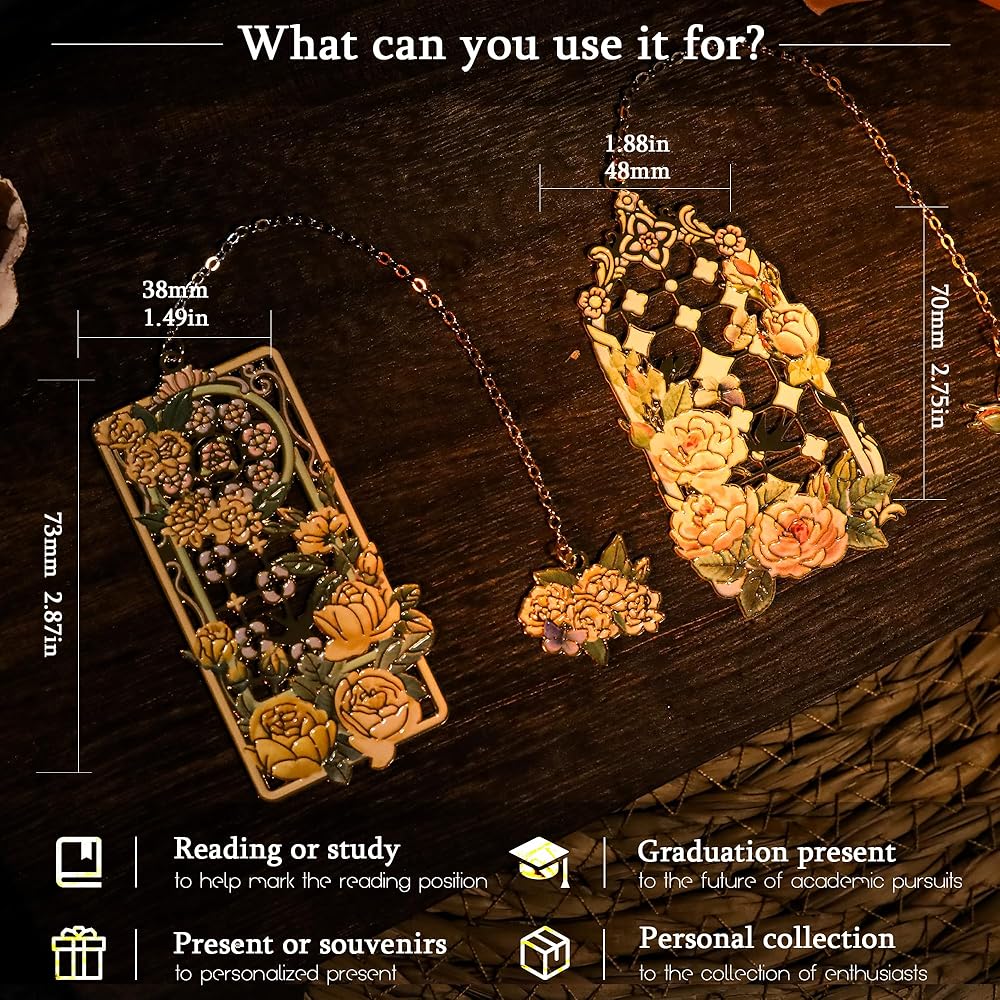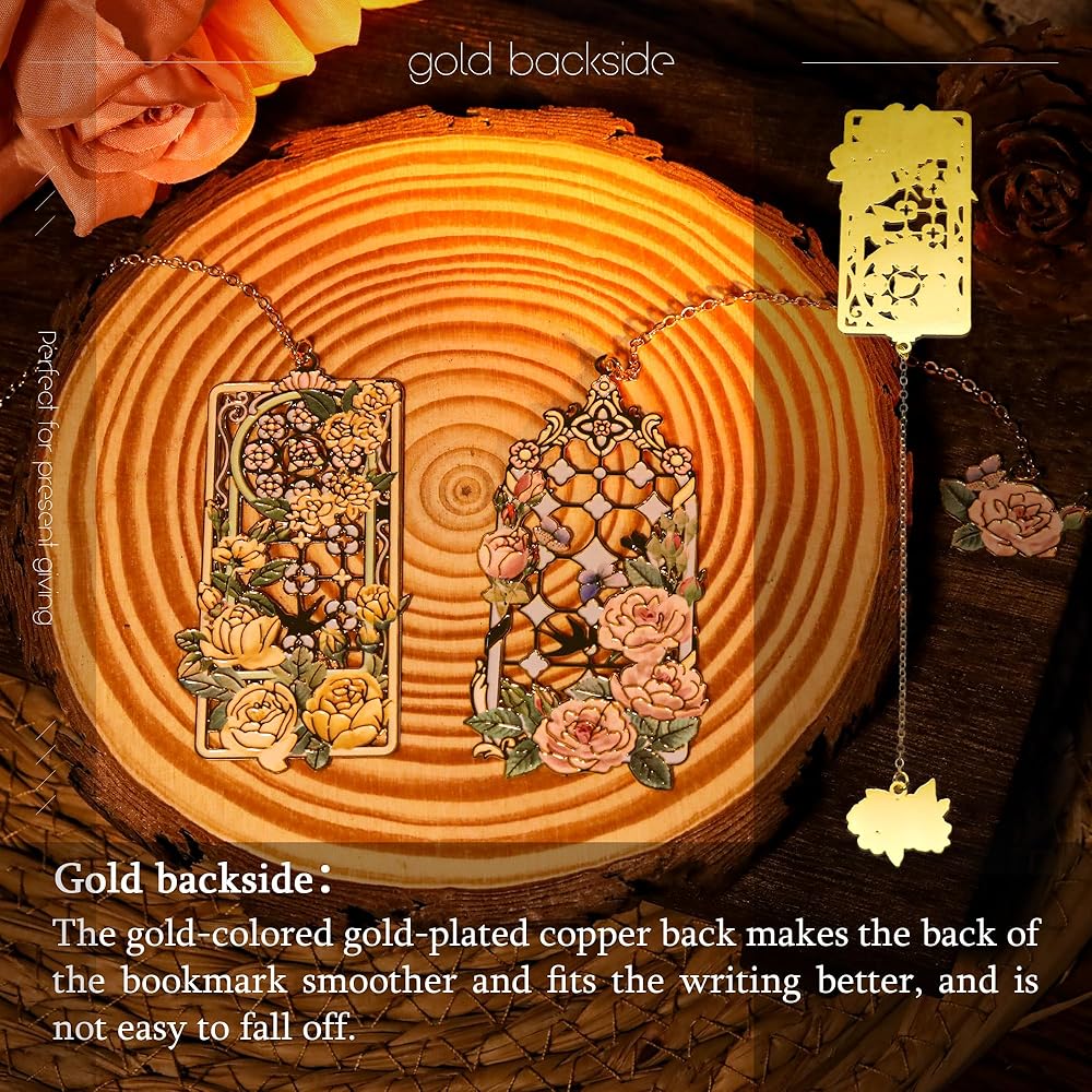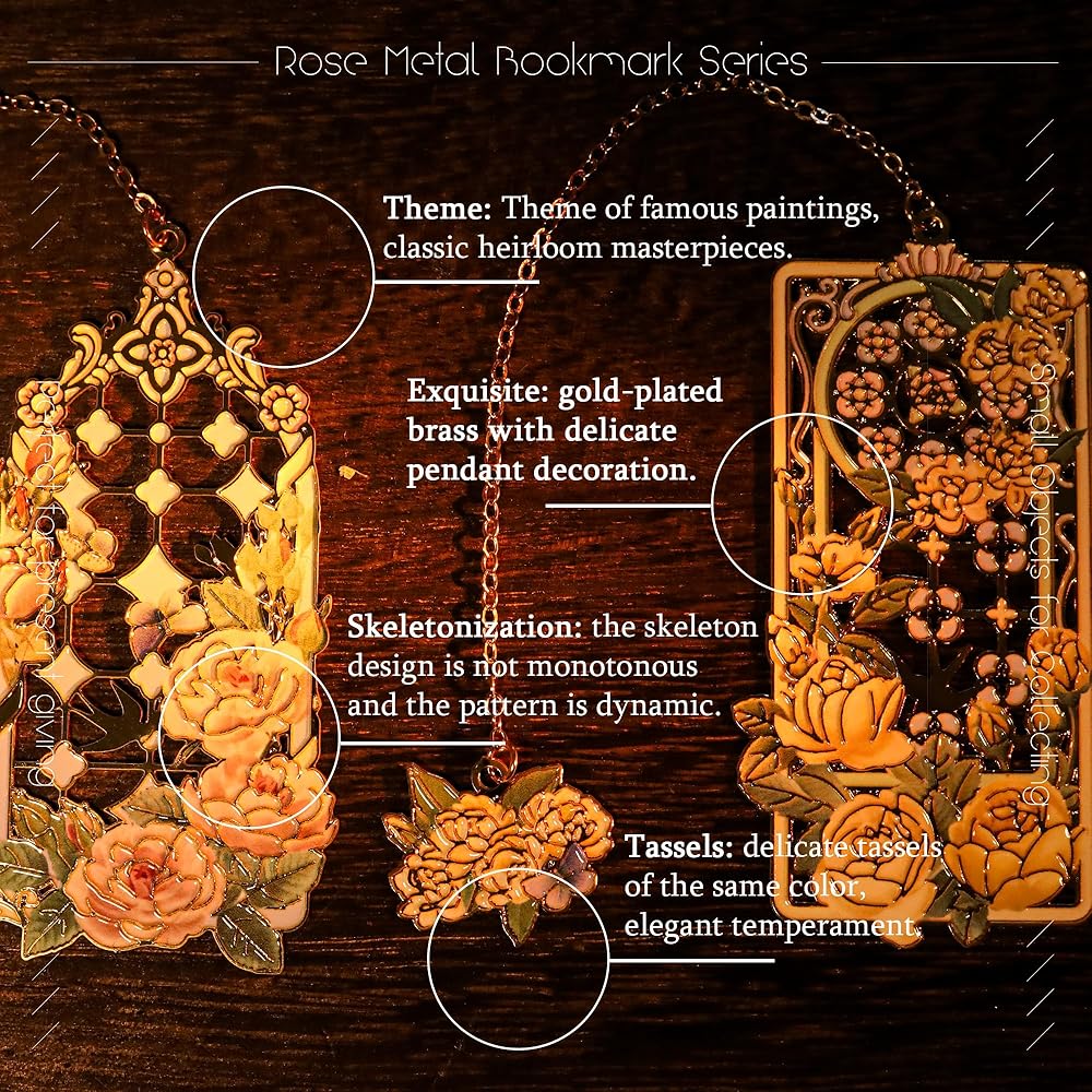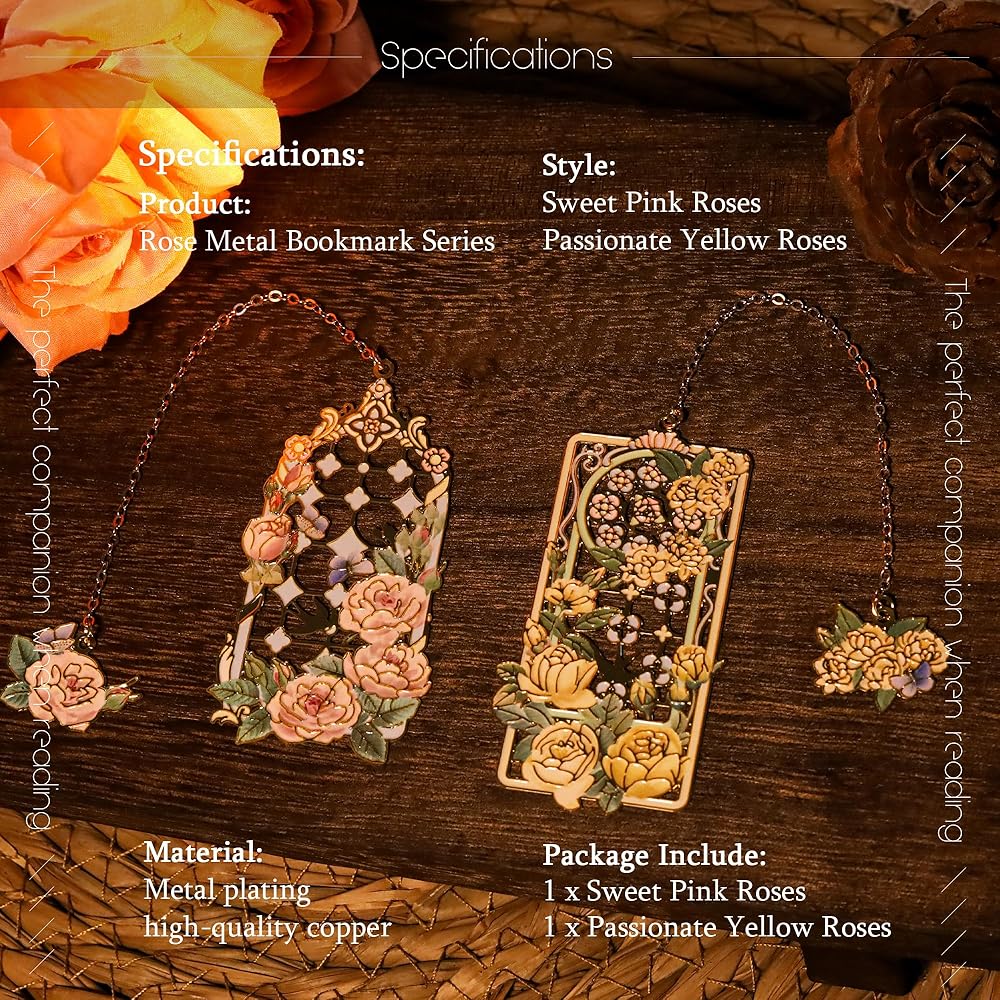 MATERIAL&CRAFTSMANSHIP: This bookmark is made of high-quality brass, with a hollow design combined with roses to highlight its unique beauty. It features elegant color matching, rich layers, and is not easy to fade. Its luster and texture will always be new