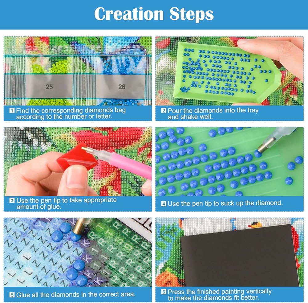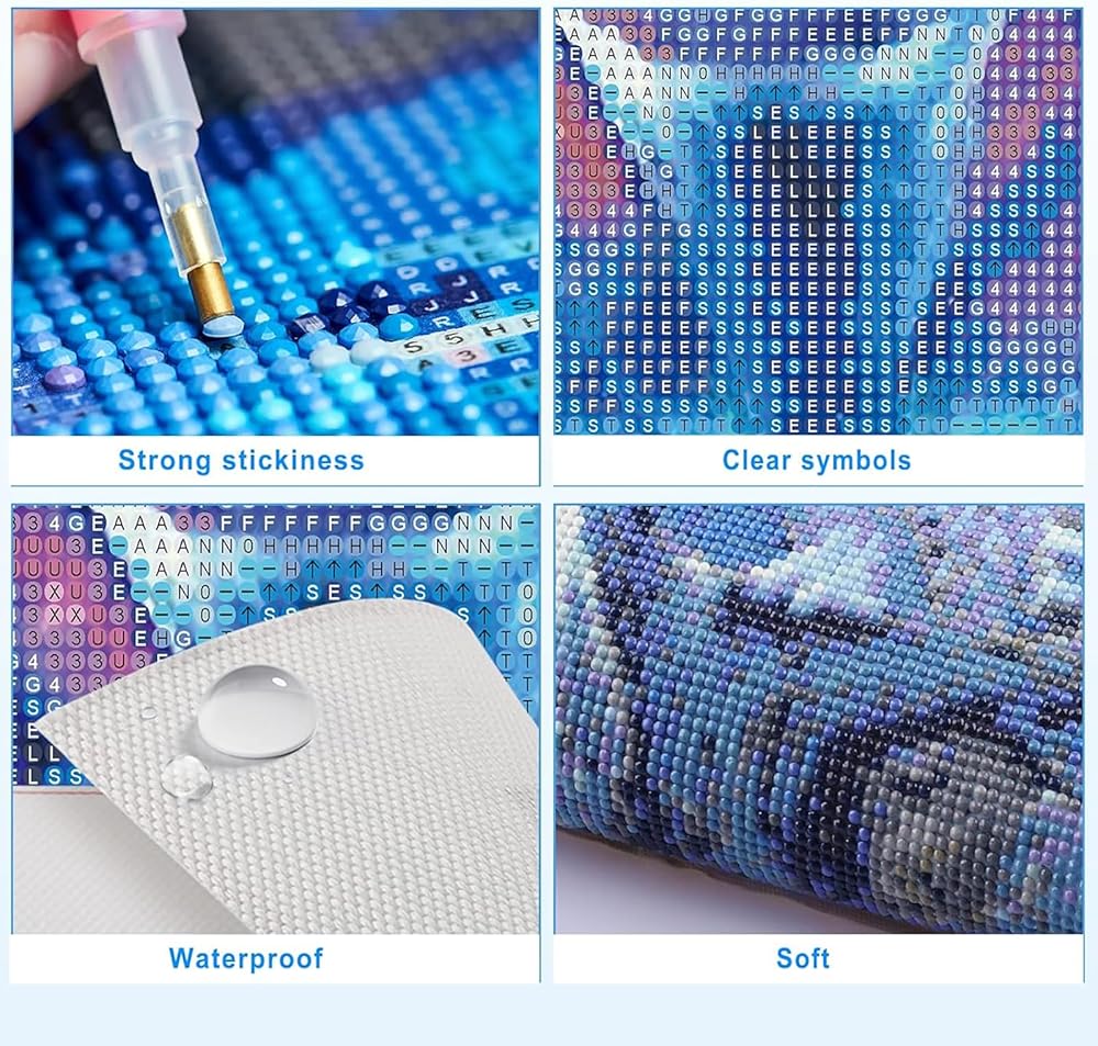 High Quality Canvas: Our Diamond Gem Painting Art Kit uses high-definition, printed, waterproof canvas. Clear symbols and numbers make DIY activities easier. The high-strength glue and transparent protective film ensure each diamond stays firmly in place