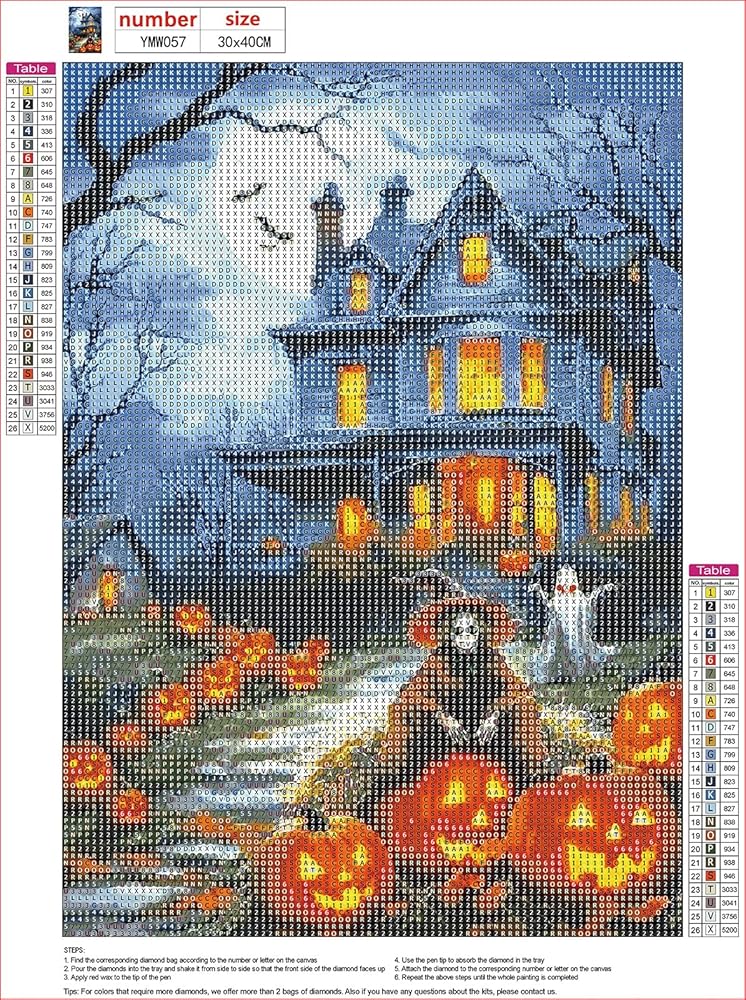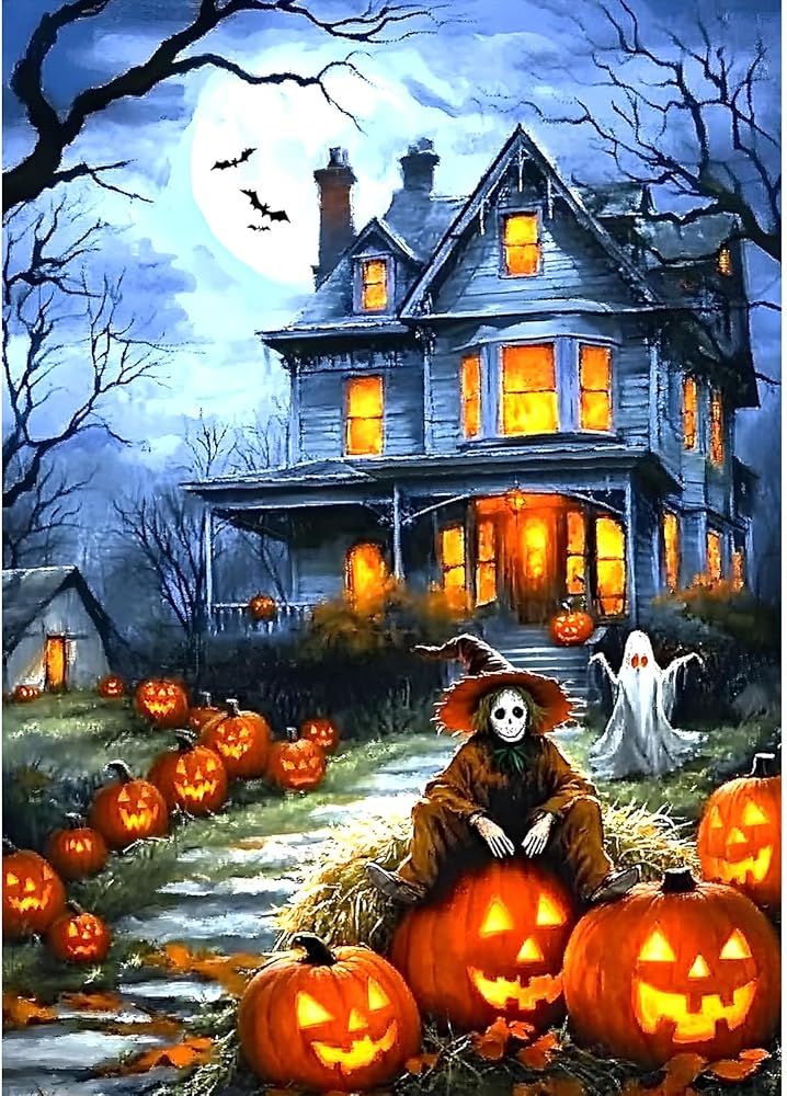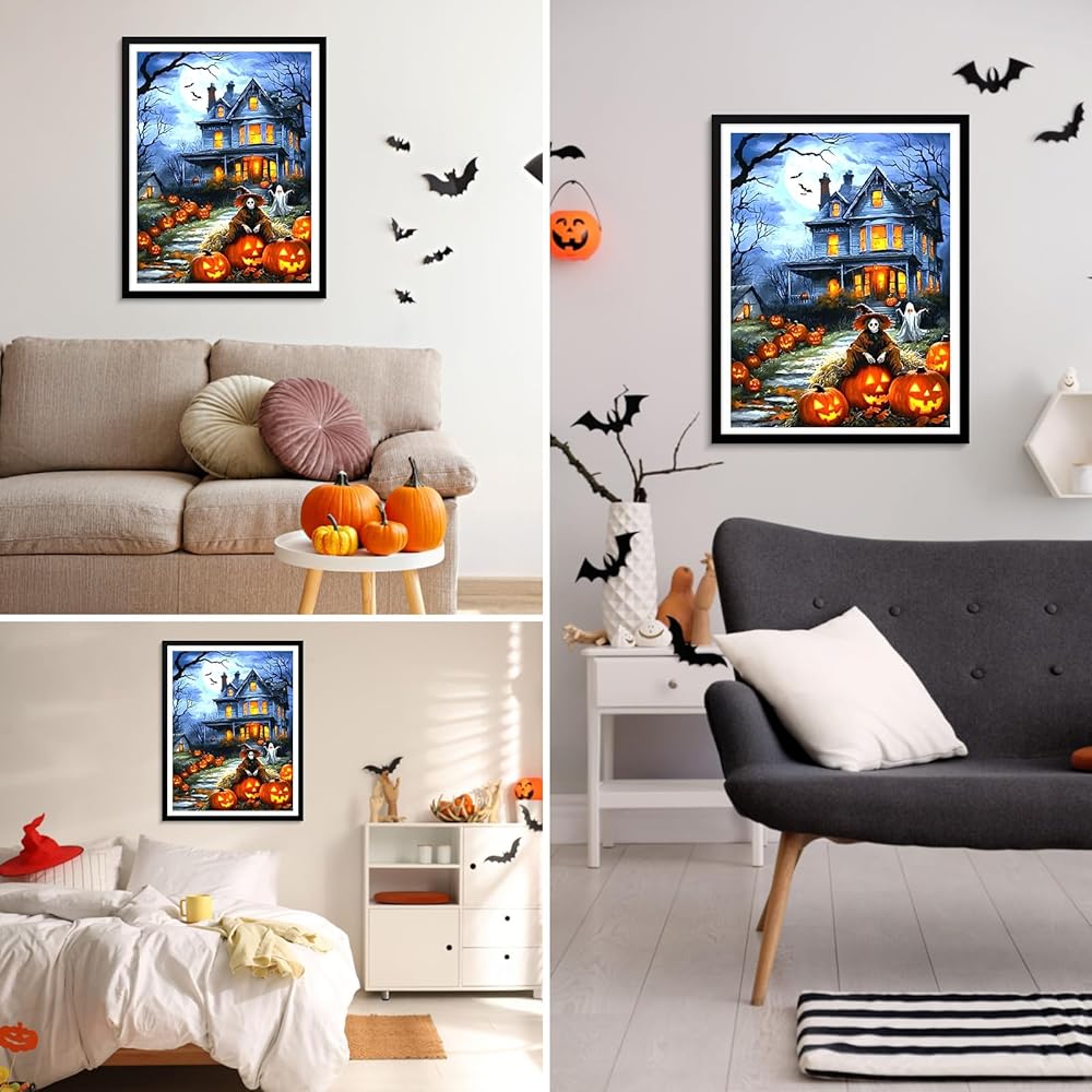 MXJSUA Halloween Night DIY Diamond Painting Kits for Adults, Pumpkins Diamond Gem Art Painting for Beginners, Scarecrows Diamond Picture with Full Round Drill Dots Craft Set Gift, 12x16 Inch