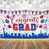 XTRALARGE : 72x44 INCH | BEAUTIFUL RED WHITE AND BLUE GRADUATION BANNER - Looking for elegant Red white and Blue graduation decorations 2025? This Radiant Blue and red graduation decorations 2025 in Red Congrats Grad Banner comes with large size of 72x44 Inch with rings implanted on each corner which makes the banner more easier to decorate or hang anywhere you feel like. Make your grad party decorations stand out which your kids will surely love.