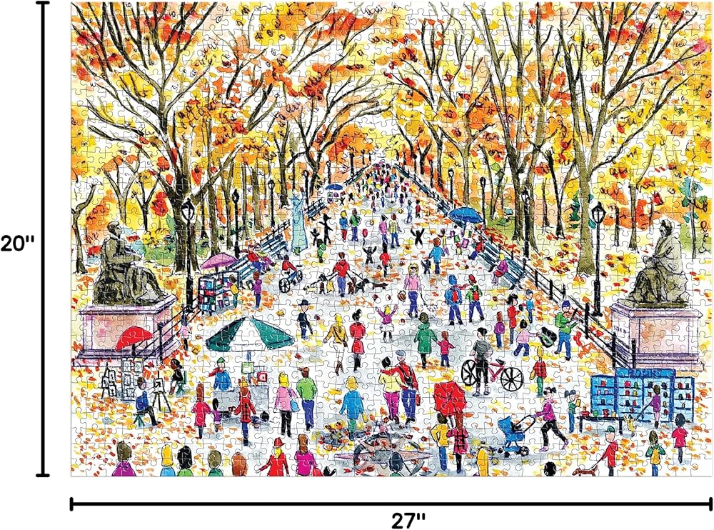 EASY HANDLING – The 1000 ribbon cut puzzle pieces are thick and sturdy. The completed puzzle measures 27” x 20”. Puzzle greyboard contains 90% recycled paper. Packaging contains 70% recycled paper and is made responsibly from FSC-certified material. Printed with nontoxic inks.