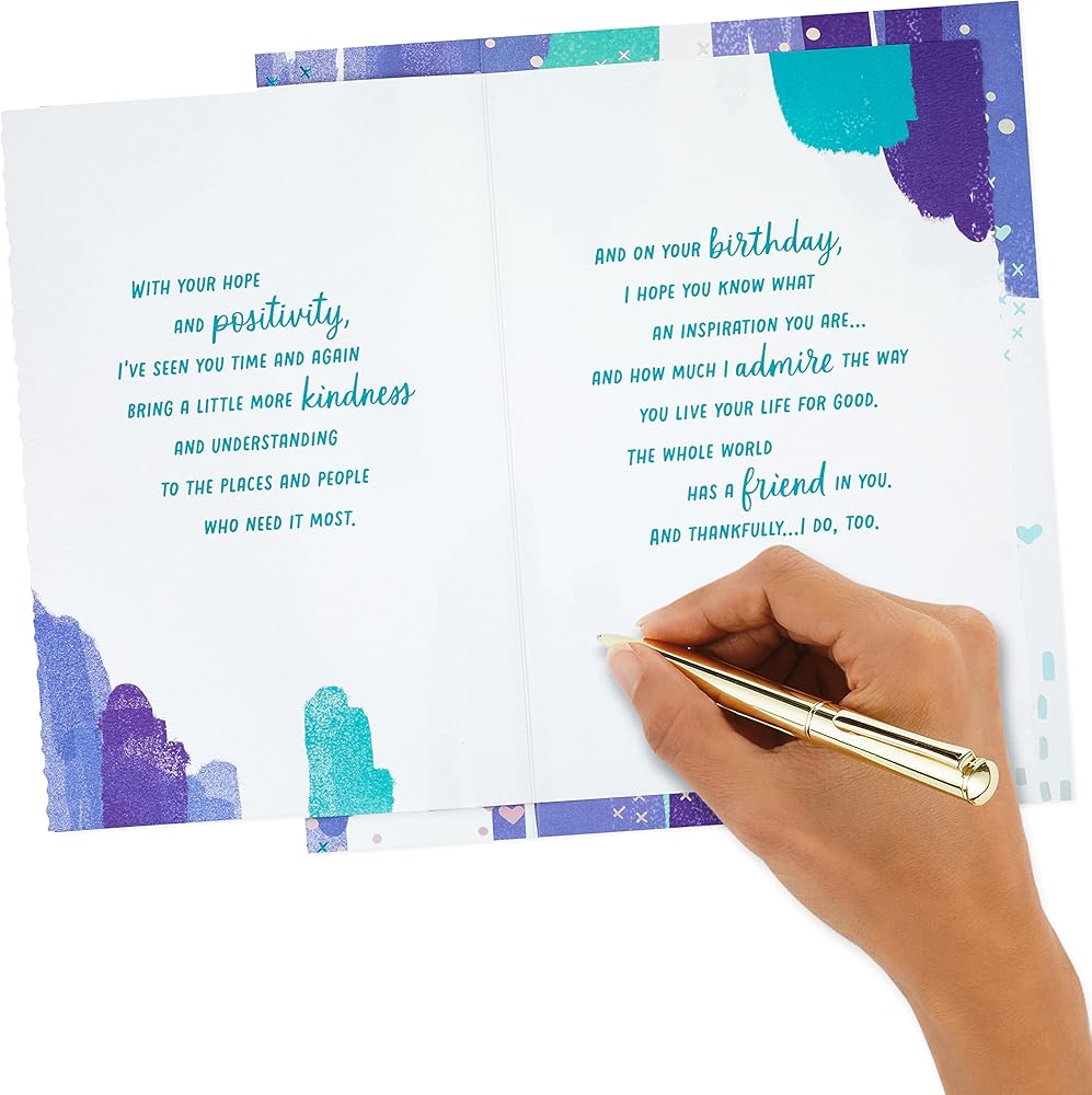 Wish your friend a very happy birthday and great year ahead with a thoughtful birthday card featuring a sparkly design and a warm sentiment inside. The perfect gift card or money holder, or accompaniment to a birthday gift, card coordinates perfectly with Hallmark's full line of gift bags, tissue paper, and wrapping paper. The Hallmark brand is widely recognized as the very best for greeting cards, gift wrap, and more. For more than 100 years, Hallmark has been helping its customers make everyday moments more beautiful and celebrations more joyful.