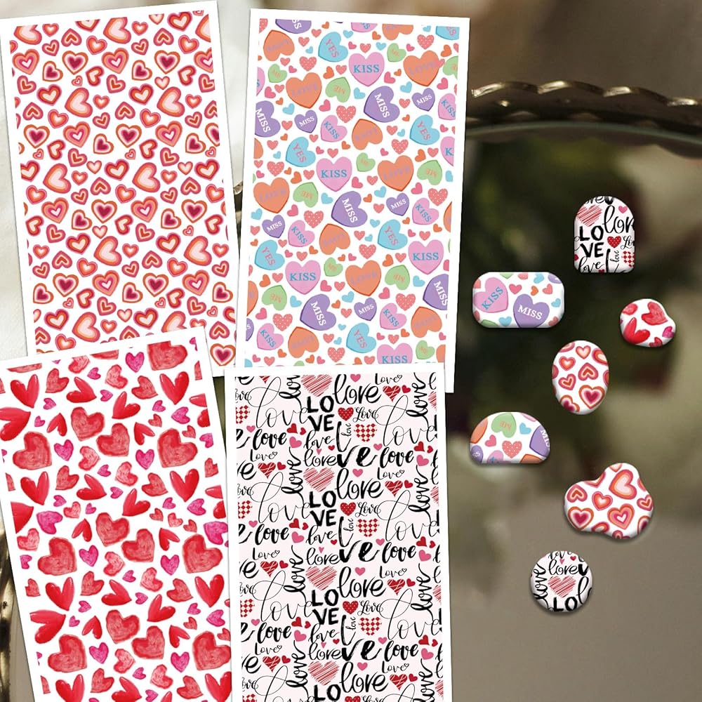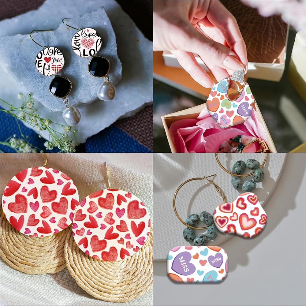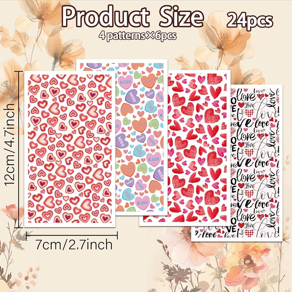 OLYCRAFT 24Pcs Valentine's Day Transfer Paper 4 Styles Love Transfer Paper for Polymer Heart-Shaped Polymer Clay Transfer Sheets Small Transfer Paper for Clay Earrings Jewelry Making