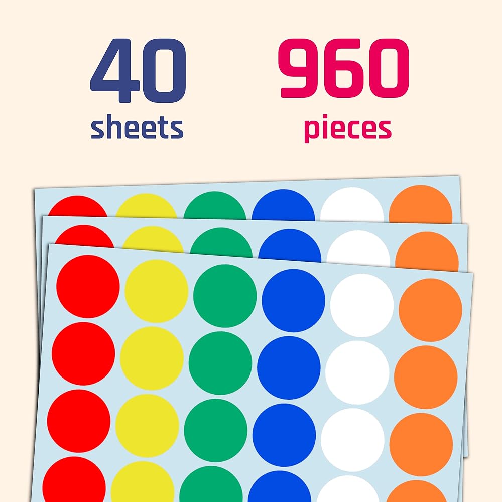 960 Pieces - 1" Colored Dot Stickers, Garage/Yard Sale Price Stickers - 6 Colors