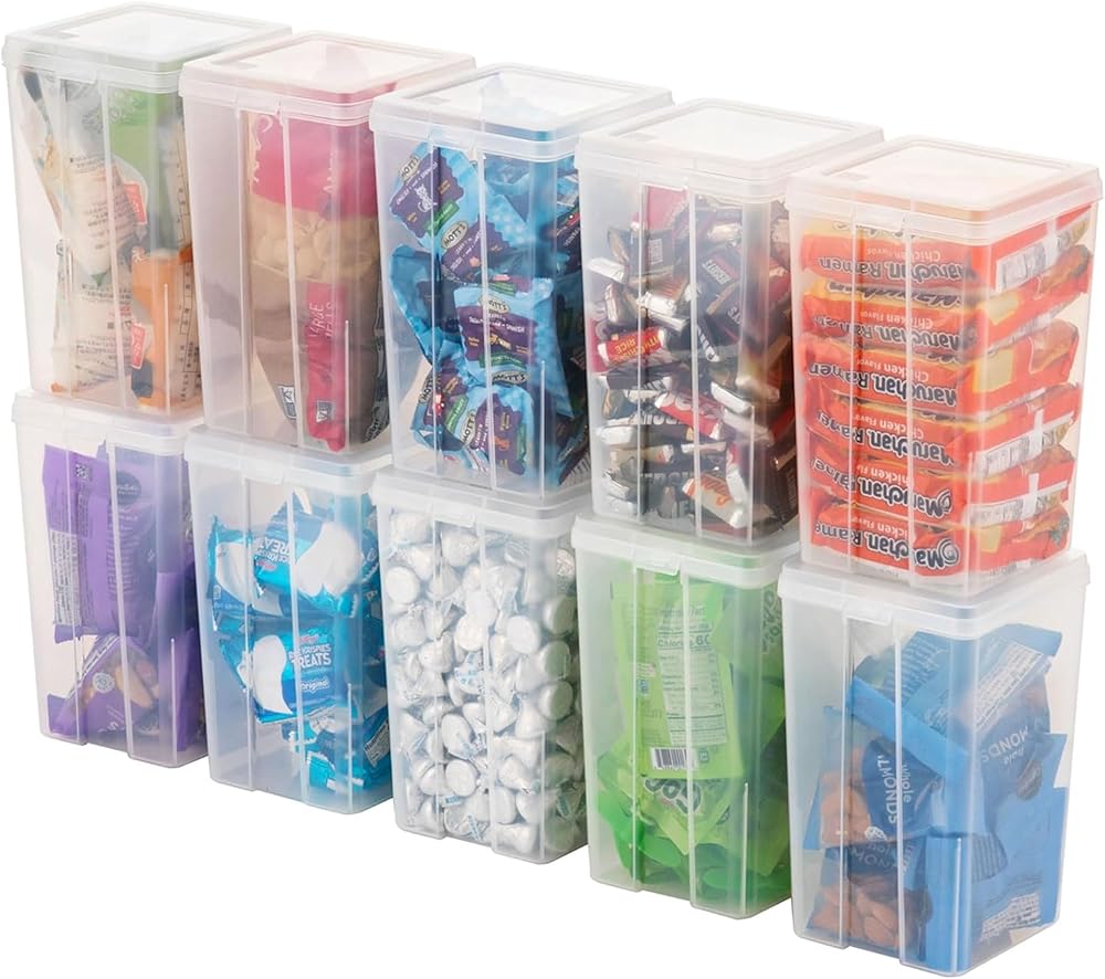 Organize your home and office effortlessly with these Vertical Storage Containers, designed to make the most of limited space while keeping essentials within reach. Unlike traditional horizontal bins, these tall and space-saving organizers help declutter your pantry, desk, vanity, or craft station. The clear plastic design ensures you can quickly locate stored items, making it a perfect solution for storing stationery, cosmetics, pantry goods, tools, and household essentials. Crafted from durable plastic, these stackable storage bins are built for long-term use, allowing you to create a customized system that fits your space. Whether you're tidying up your kitchen, bathroom, or workspace, these containers offer a neat and functional organization solution. With three available sizes – Large, Medium, and Small, sold in packs of 6 or 10, you can mix and match to meet all your storage needs.