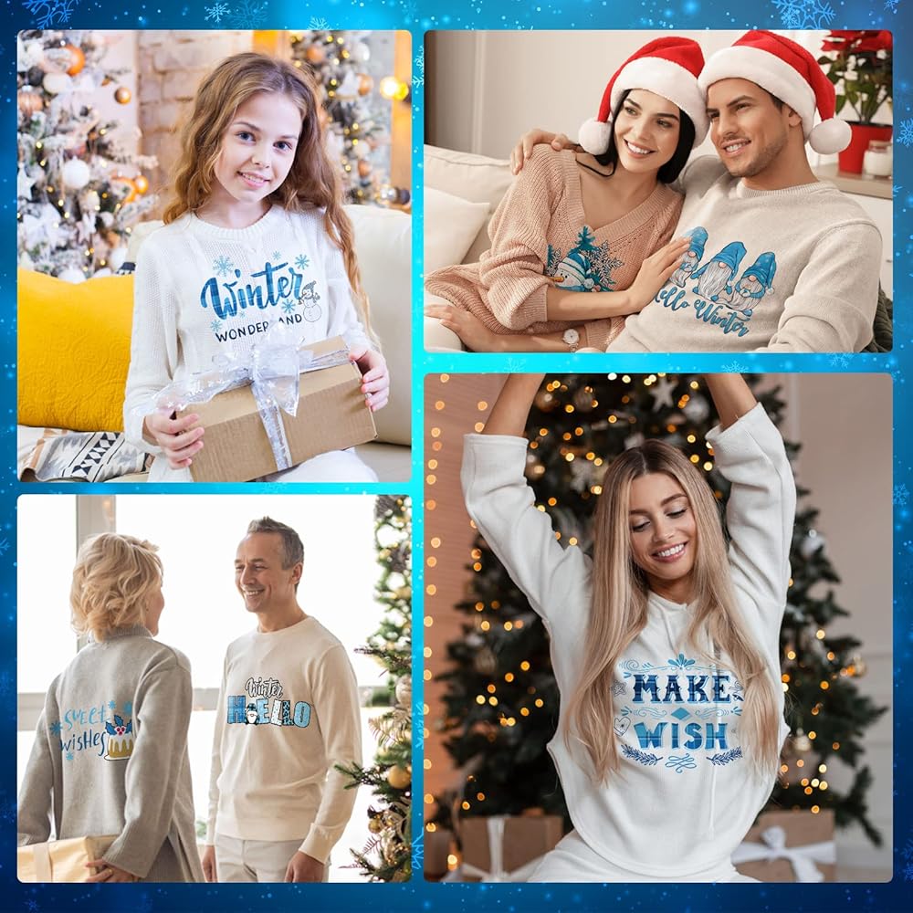Classic Winter Theme Design: these iron on decals for t shirts are designed with many winter elements, like snowflake, cedar, snowman and so on, which are full of art feels, attractive and elegant, easy to get others' attention, showing your good tastes