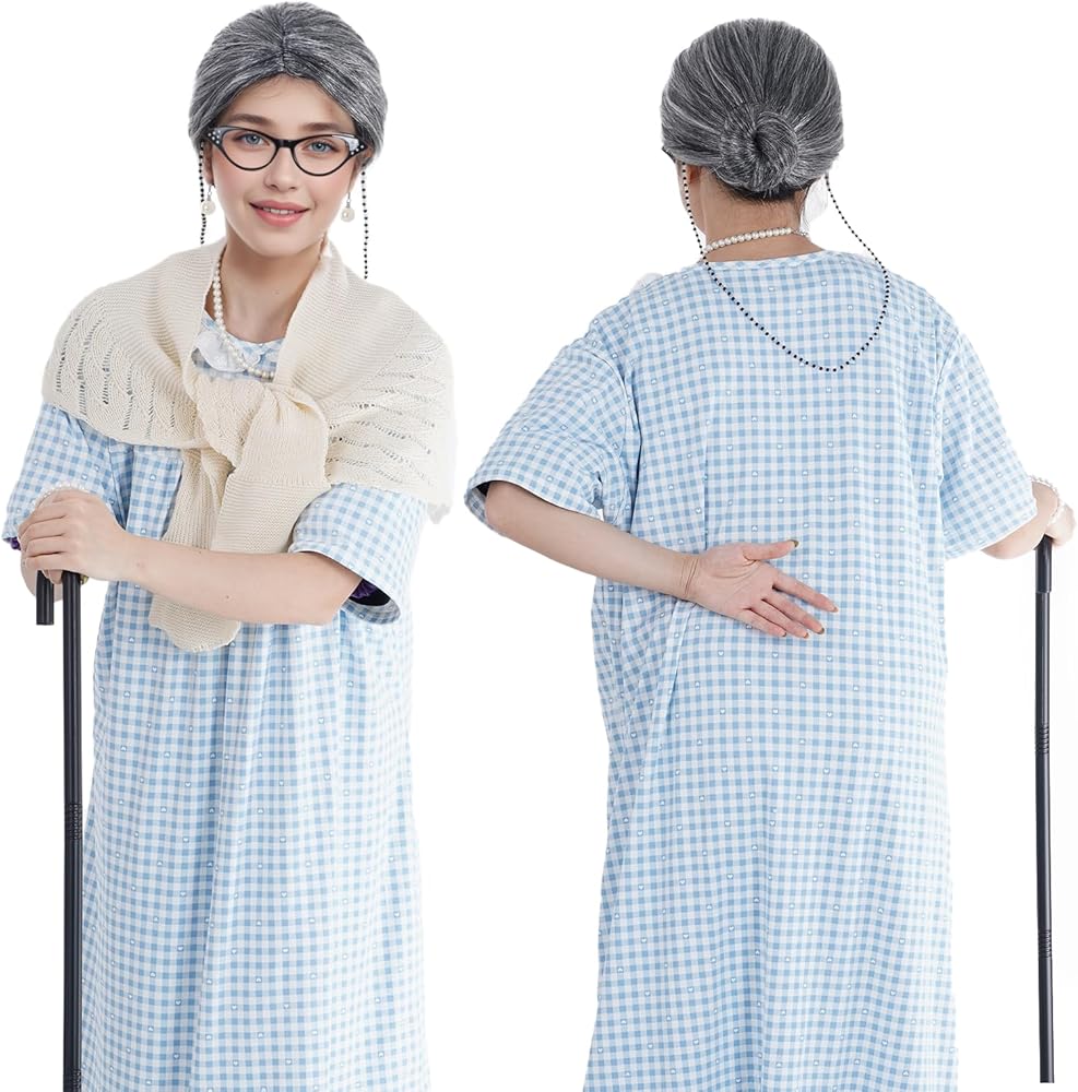 Wide Occasions: This old lady costume is suitable for school events, family gatherings or holiday celebrations when playing the role of a grandmother, suitable for Halloween, 100 days of school costumes and other events
