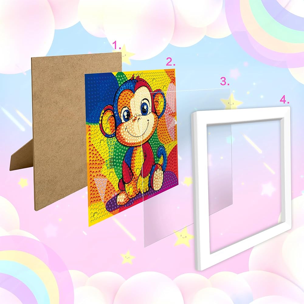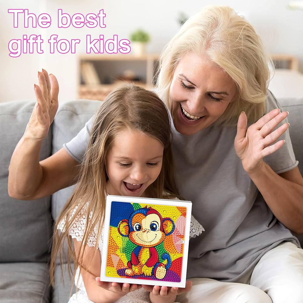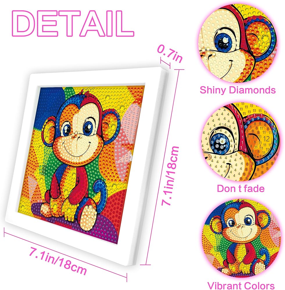 Reofrey Diamond Art Kits for Kids with Frame, DIY Monkey Animal Diamond Painting Kits, Fun Arts and Crafts for Girls & Boys Ages 4,5,6,7,8,9,10,11,12, Creative Educational Toy for Beginners (7x7 Inch)