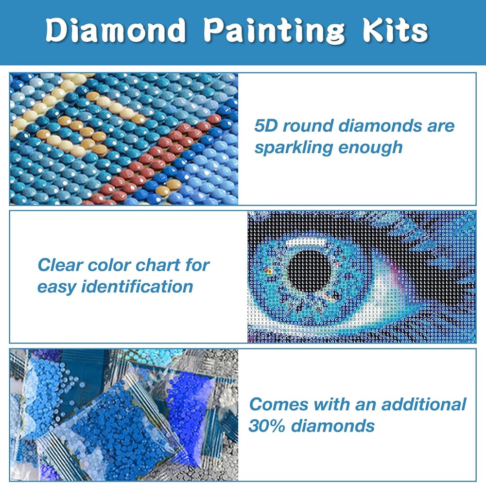 DIAMOND ART KITS: Diamond art Kits is a kind of handmade artwork, this is a diamonds arts and crafts full of creativity and expression. 5D diamond art with sparkle diamonds, shining in the light, bringing the whole picture to life