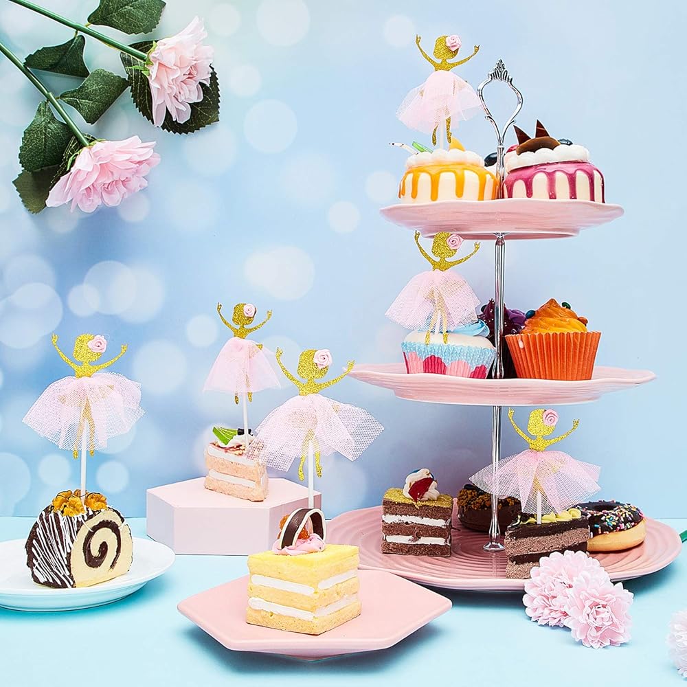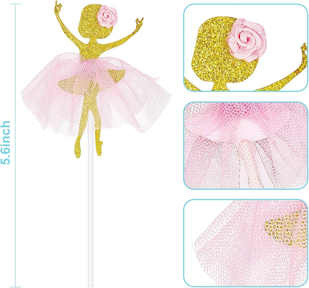 Quality material: our ballet cupcake toppers are made of quality glitter cardstock, the dress and flower are made from tulle, which is durable, non-toxic and odorless, not easy to break, very safe and reliable for a long time using