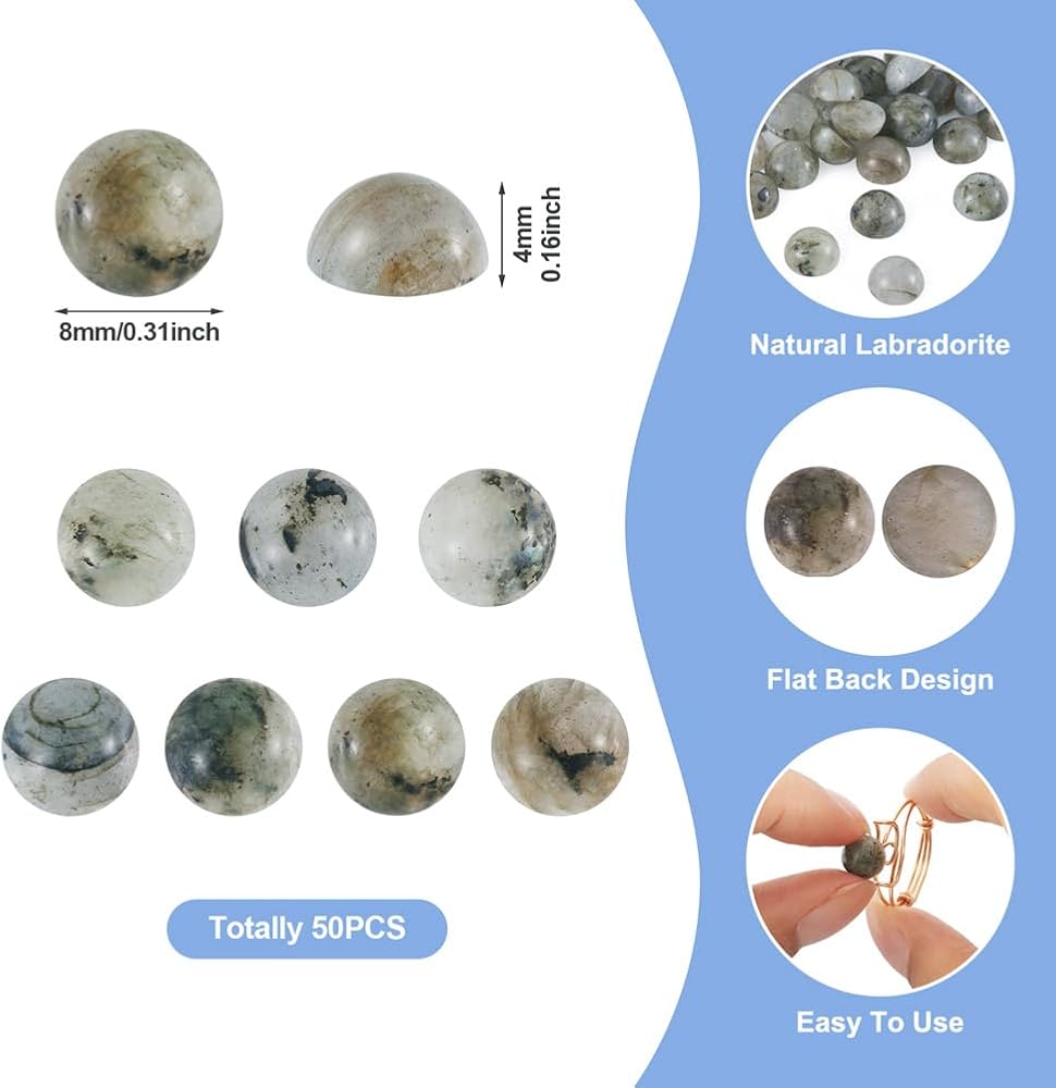 PACKAGE INCLUDES-- 50pcs gemstone cabochons with about 10mm diameter, 4~5mm thick.