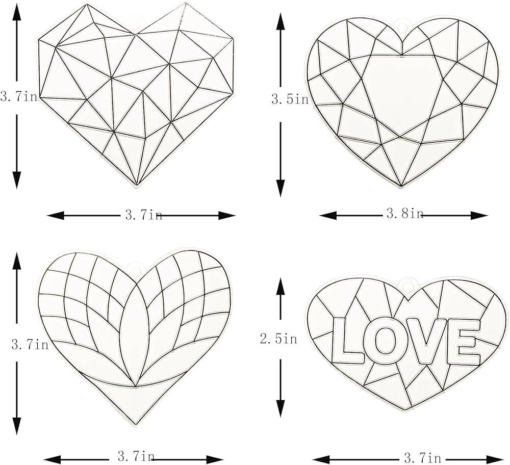 DIY Sun Catchers Making Kits:These heart suncatchers height size are about 3.7'',393" fishing thread,Each mini paint pot holds 0.17 oz/5ml of paint,suncatcher paint include Pink, Rose Red, Yellow, White, Rose Purple, Blue,These kits are a great way to keep people engaged during a Valentine's Day party. It's celebration time!