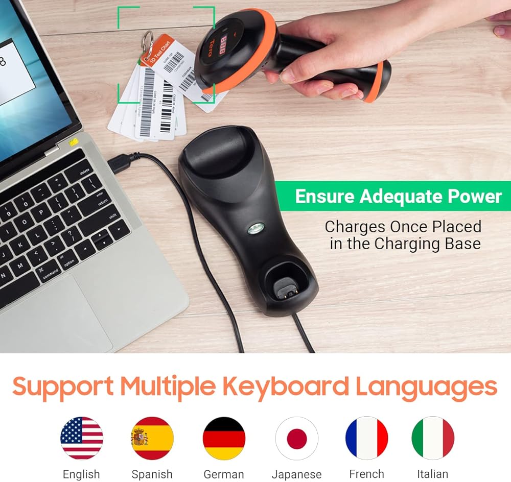 【Unique Counting Screen & Charging Cradle】Tera HW0008 handheld wireless 1D 2D QR barcode scanner is equipped with Unique Counting Screen which is convenient for warehouse inventory management. And it comes with a Charging Cradle, the scanner charges when placed on the cradle, which enables the scanner to maintain adequate level of battery, always powered on, no more low battery anxiety.【Package Includes】Barcode Scanner x1, Charging Cradle x1, User Manual x1