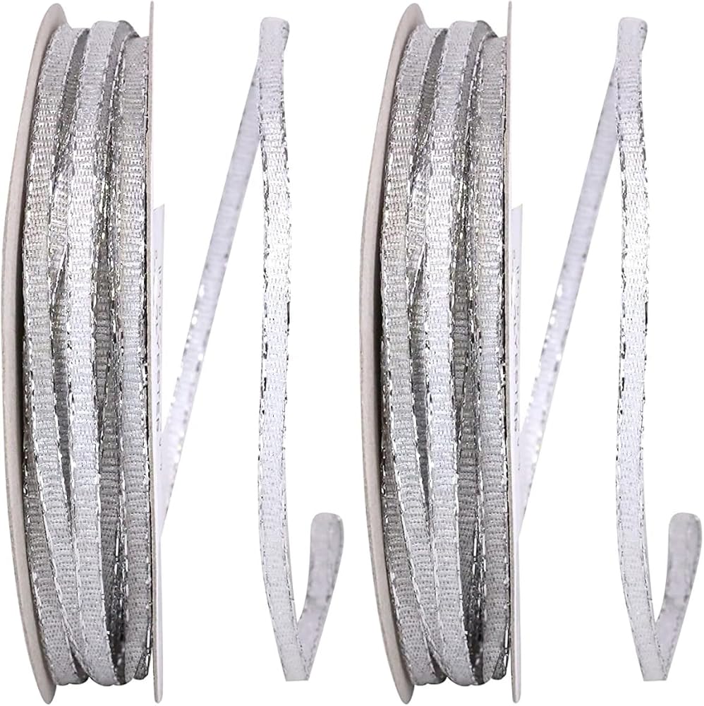 Ribbon Glimmer Wired Edge Wired Color : Silver Size : 1/8 Inch X 25 Yards Fiber Content : 40% Met 60% Polyester Ribbon Glimmer Wired Edge, Silver ; With this ribbon, all that glimmers IS gold - or silver. Either way it will be a dramatic and stunning enhancement to all your decorative projects.