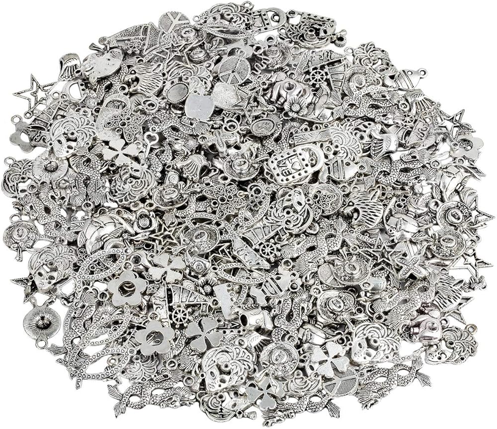 Size details of the alloy charms:6mmx8mm-33mmx32mm; Hole:1mm-7mm. Quantity:1 Pack(230Gram)