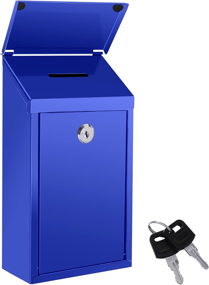 Multiple uses: It has multiple functions and can be used as a donation box, collection box, mailbox, opinion box, ballot box, key delivery box, cash box, etc., convenient for delivering voting papers, opinion letters, coins, checks, mail, keys etc., suitable for all scenarios such as offices, homes, outdoors, farms, roadside stalls, etc