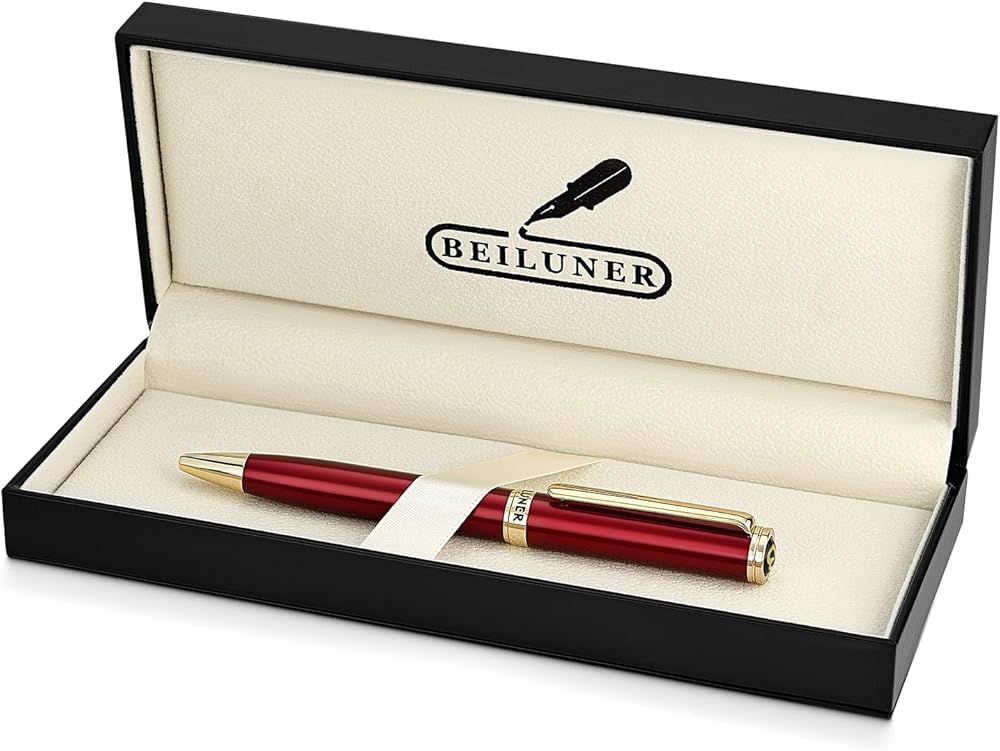 BEILUNER Red Lacquer Gel Pen With 24K Gold Finish, Retractable Pens, Gift Pen Set, Professional, Elegant, Writing, Executive, Office, Nice Fancy Designer, Perfect for Men and Women