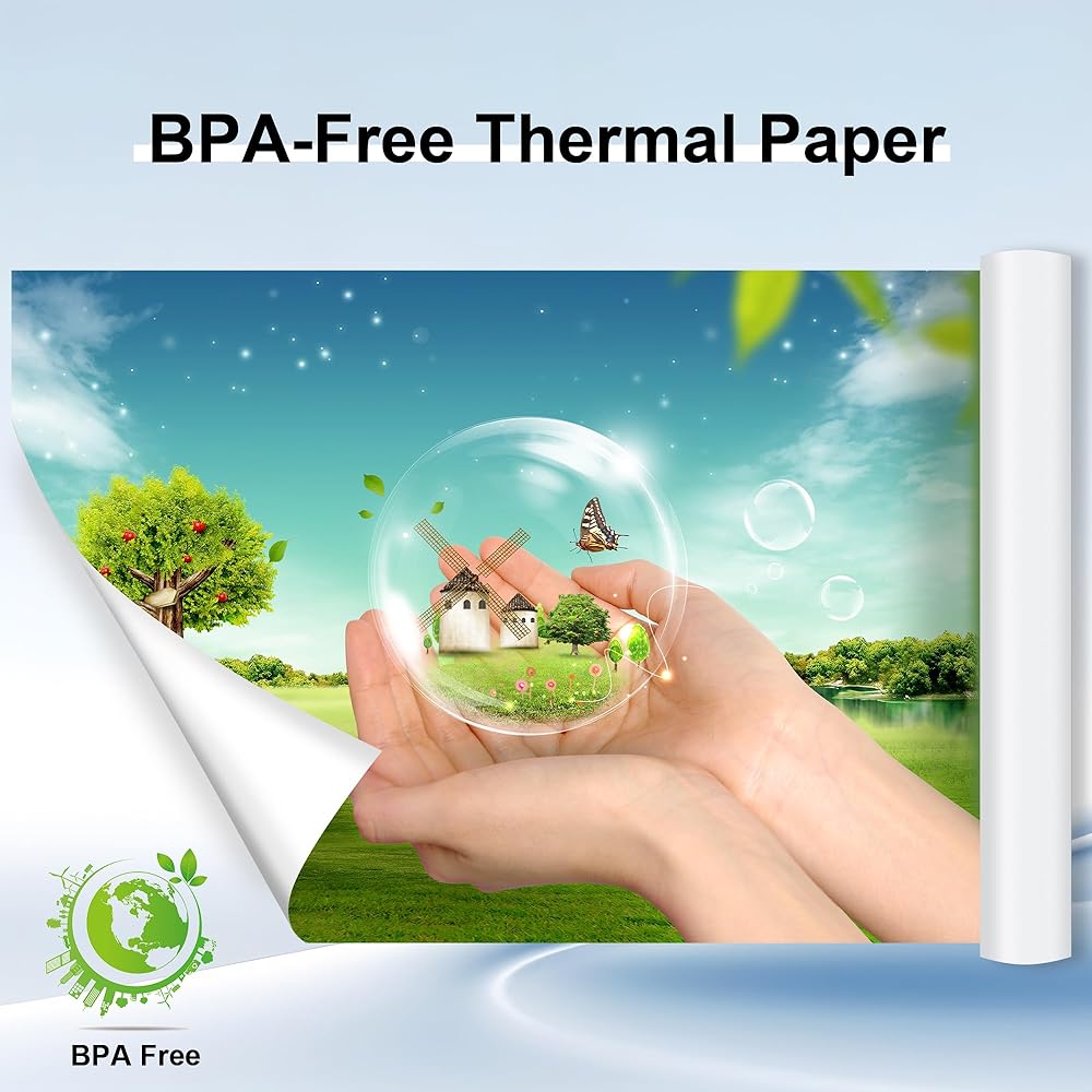 BPA Free - BPA (Bisphenol A) is an industrial chemical. It may cause endocrine disorders and have certain effects on people's health. Phomemo thermal paper has passed RoHs certification. It's tested that the paper doesn't contain any carcinogens. Please feel confident to use the paper.