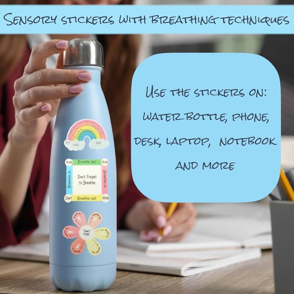 Texture Stickers Sensory Set: The set includes 24 calming stickers for kids or adults. Different patterns of mindfulness stickers - flower, heart, maze, and more. The relaxing colors and granulated texture designed to help with stress and reduce anxiety