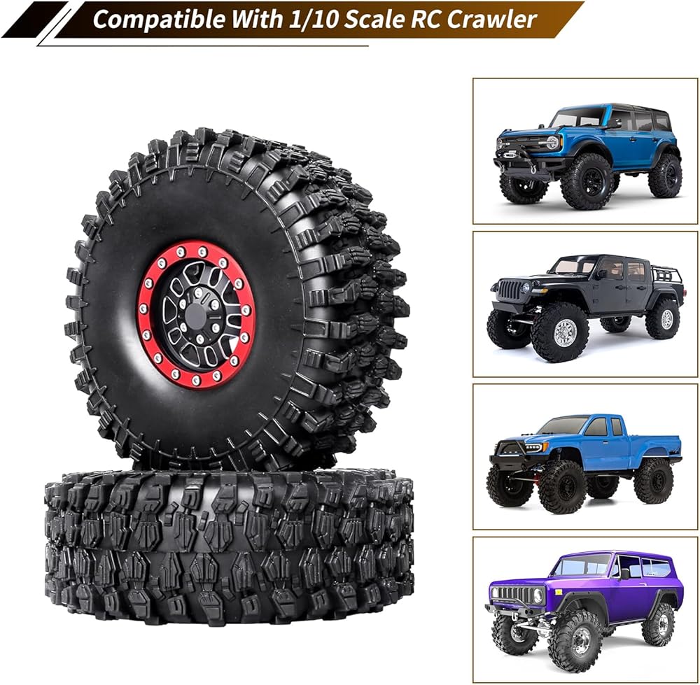 Universal Fit: The 1.9 Beadlock Wheels are compatible with 1/10 scale crawler truck with 12mm hex drive, fit fot Axial SCX10 SCX10 Pro SCX10 II 90046 SCX10 III AXI03007 Wraith, Traxxas TRX-4 TRX6, Redcat Gen 8 Gen 7 Everest 10, Element Enduro, MST CFX-W, HPI Venture, Vanquish VS4-10, Tamiya CC01 D90 CC02, MST CFX-W and others