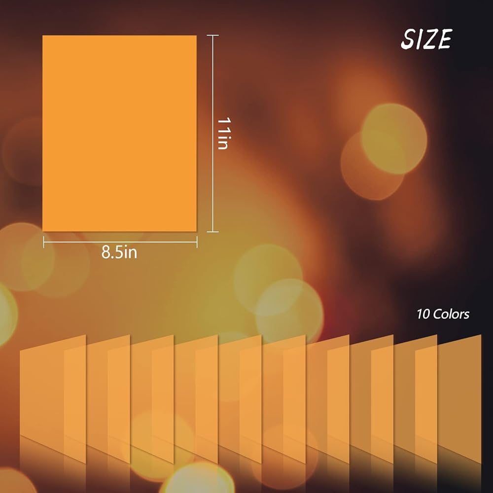Sakolla 10Pcs Colored Lighting Gel Filters, Correction Gel Light Filter, Transparent Color Overlays Film Plastic Sheets 8.6 x 11 Inch (Halloween Orange)